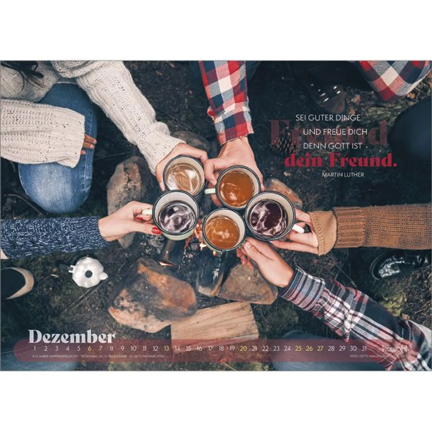 Mit prägnanten Zitaten, herausfordernden Versen und zwölf starken Abenteuerbildern beleitet Sie dieser Wandkalender durch das Jahr. Er regt zum Nachdenken an, lädt ein, den Fokus neu zu setzen, sich auf Gott auszurichten und ihm zu vertrauen.