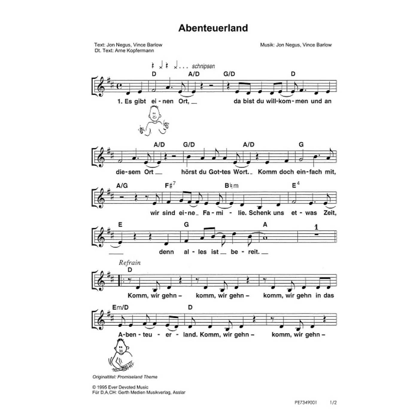 Abenteuerland (diese Variante haben Sie gerade ausgewählt) (einstimmig, mit Akkorden, D-Dur) Vince Barlow (Komposition, Text), Jon Negus (Komposition, Text), Arne Kopfermann |