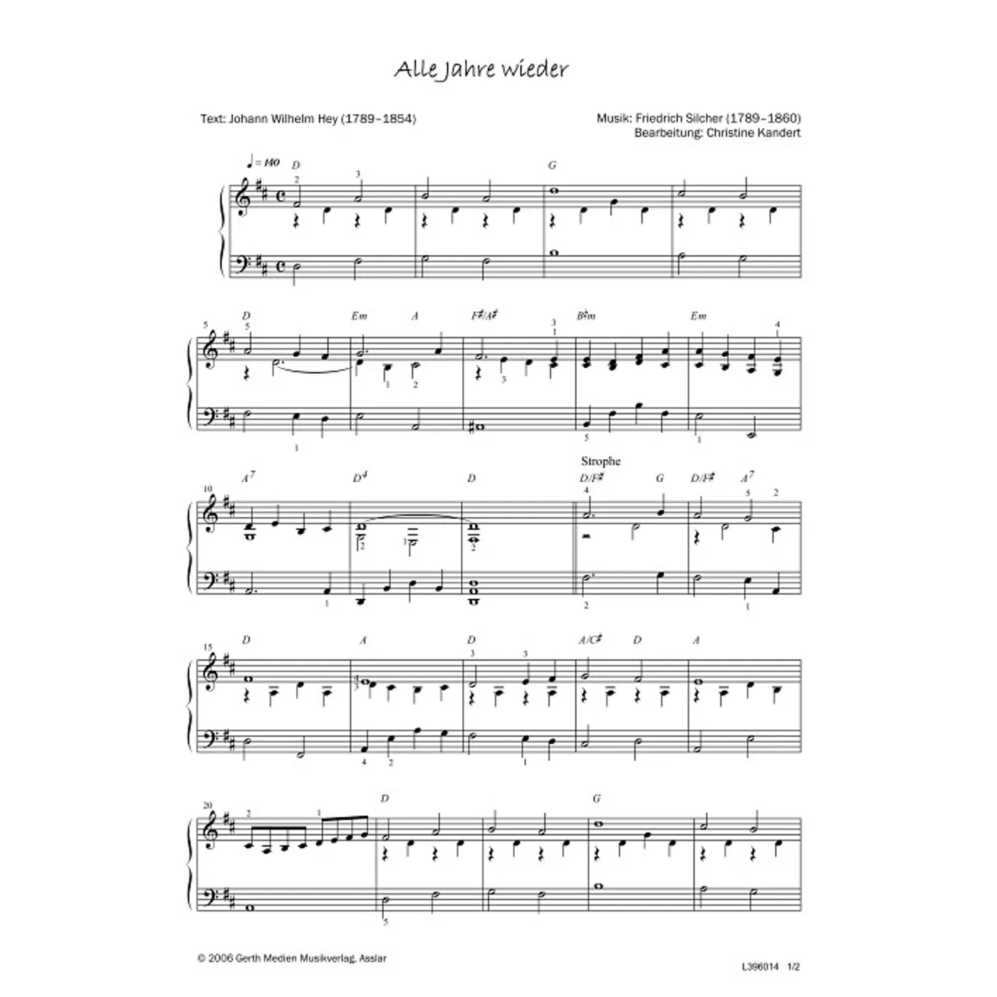 Alle Jahre wieder (diese Variante haben Sie gerade ausgewählt) (traditionell, Klavier, Klavierpartitur, Partituren, mit Akkorden, D-Dur) Christine Kandert (Klaviersatz) |