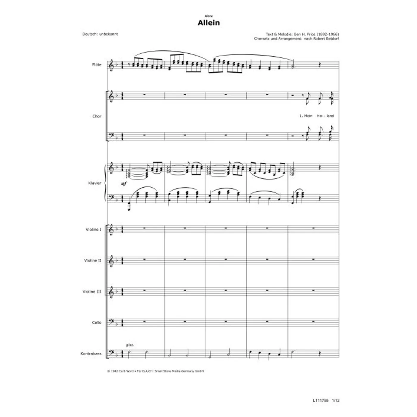 Allein (traditionell, Klavier, Klavierpartitur, Partituren) Ben H. Price (Komposition, Text), Robert Batdorf (Chorsatz) | traditionell, Klavier, Klavierpartitur, Partituren | 3,80 € | ||