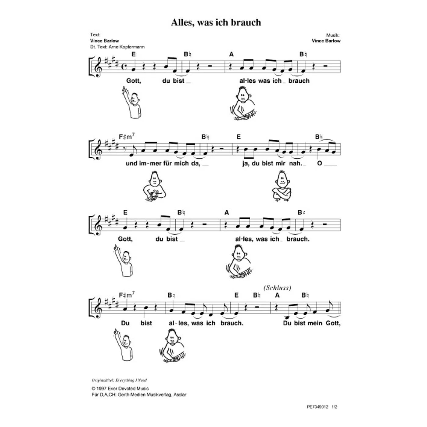 Alles, was ich brauch (diese Variante haben Sie gerade ausgewählt) (einstimmig, mit Akkorden, E-Dur) Vince Barlow (Komposition, Text), Arne Kopfermann |