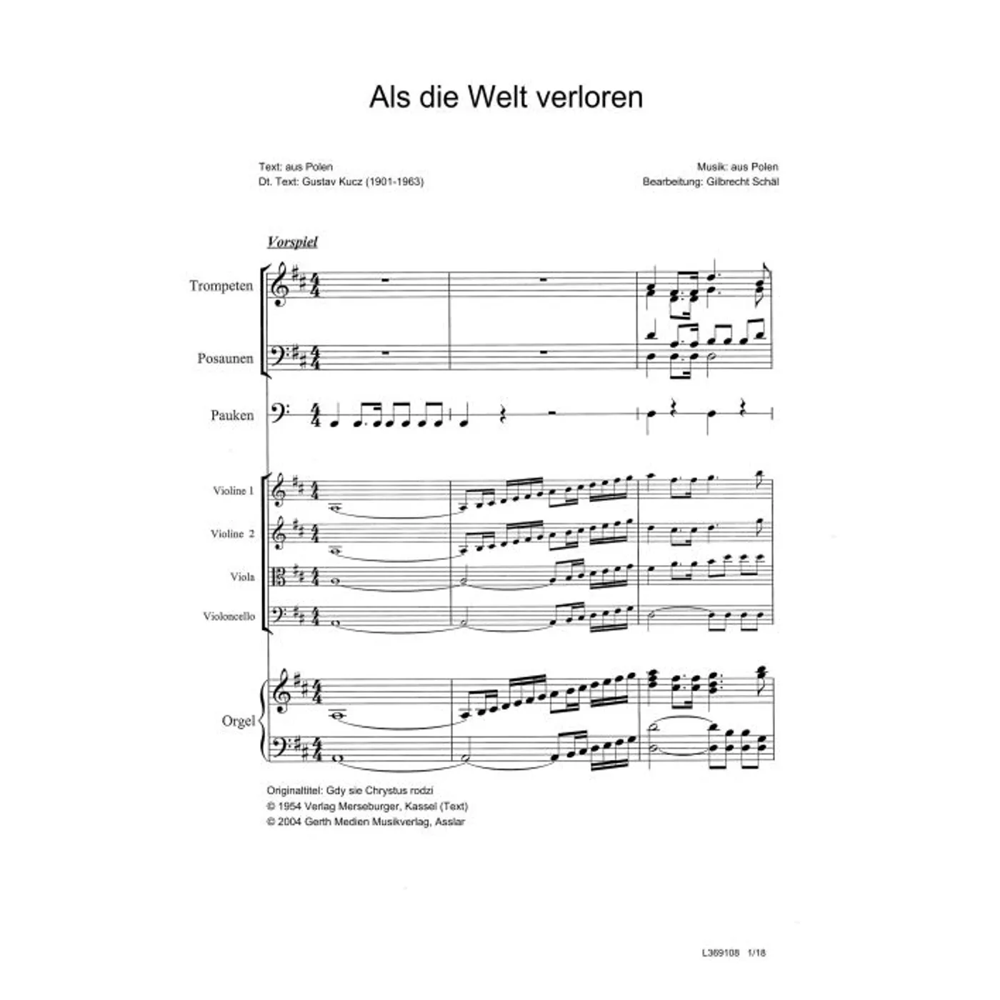 Als die Welt verloren (diese Variante haben Sie gerade ausgewählt) (Klavier, Partituren, gemischter Chor, vierstimmig) Gilbrecht Schäl (Bearbeiter), Gustav Kucz |