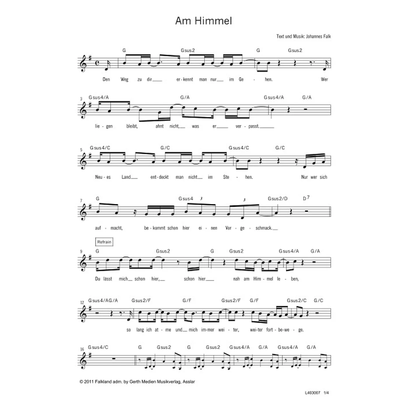 Am Himmel (diese Variante haben Sie gerade ausgewählt) (einstimmig, mit Akkorden, G-Dur) Johannes Falk (Komposition, Text) |