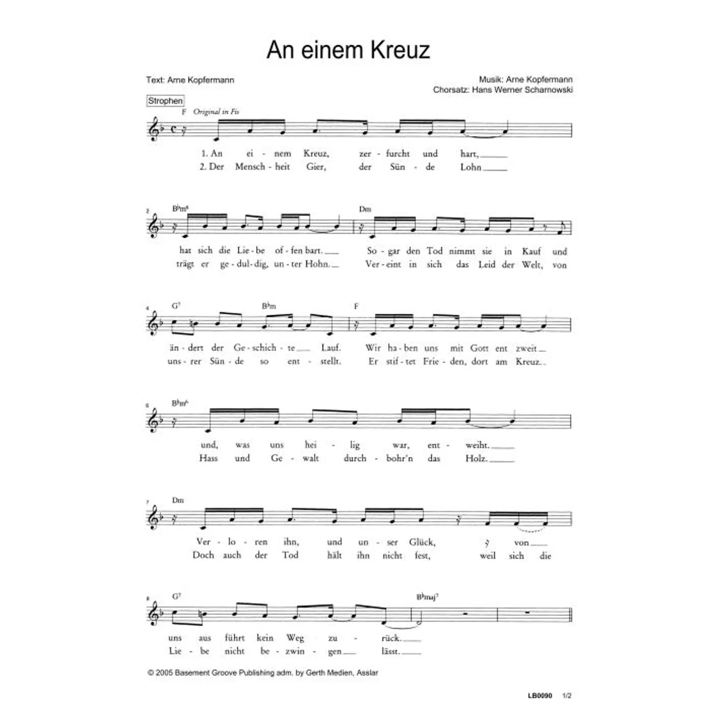 An einem Kreuz (diese Variante haben Sie gerade ausgewählt) (modern, gemischter Chor, mit Akkorden, F-Dur) Arne Kopfermann (Komposition, Text), Hans Werner Scharnowski (Bearbeiter) |