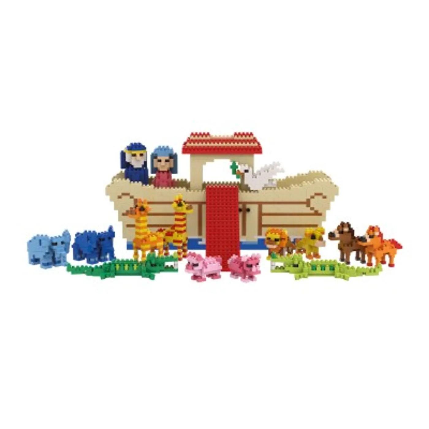 Riesengroßer Spielspaß! Die Arche, Noah, seine Frau und 13 verschiedene Tieren aus insgesamt mehr als 1600 Spielsteinen zum Selbstzusammenbauen.