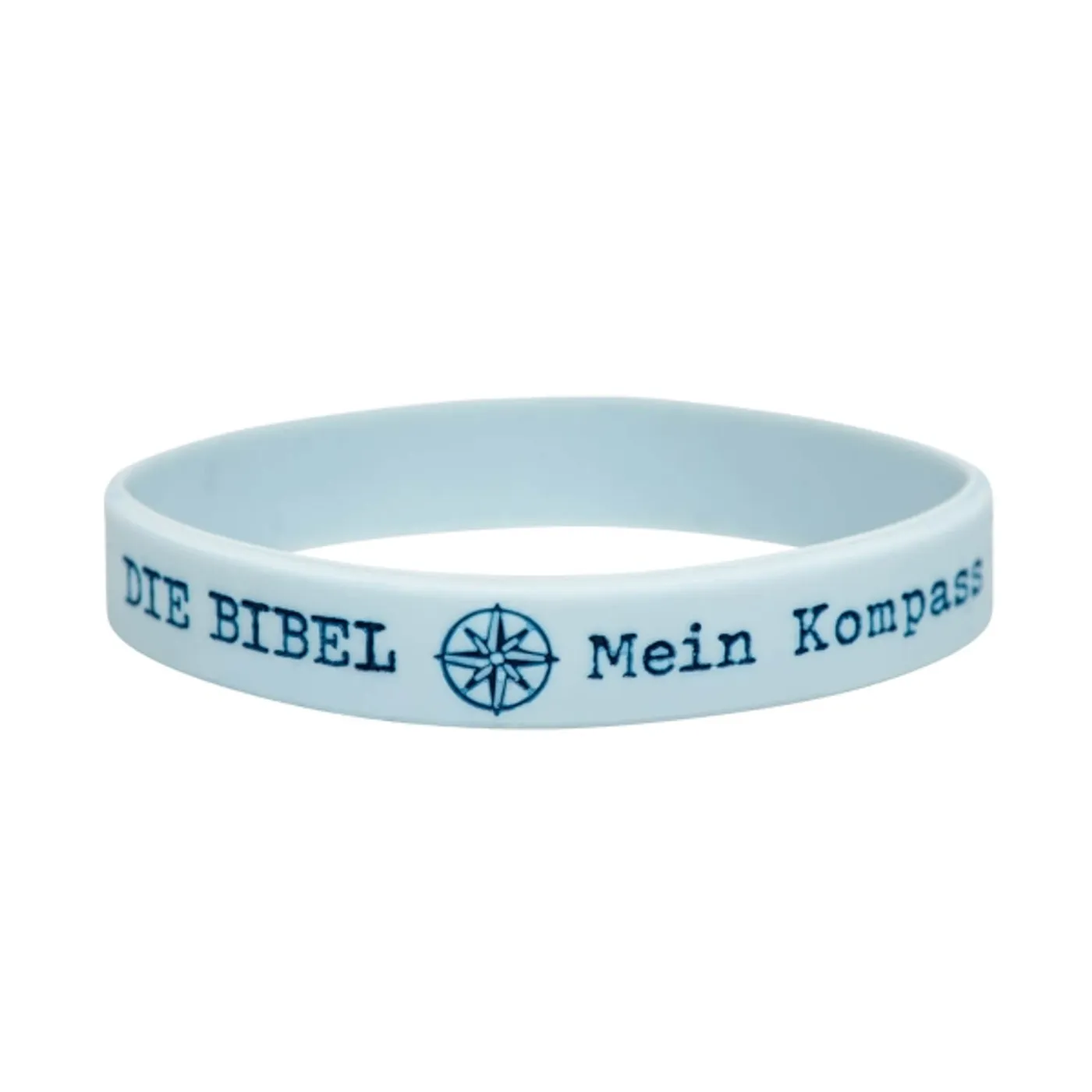 Silikonarmband "Kompass": Schriftzug "DIE BIBEL – Mein Kompass" im Farbprägedruck.
