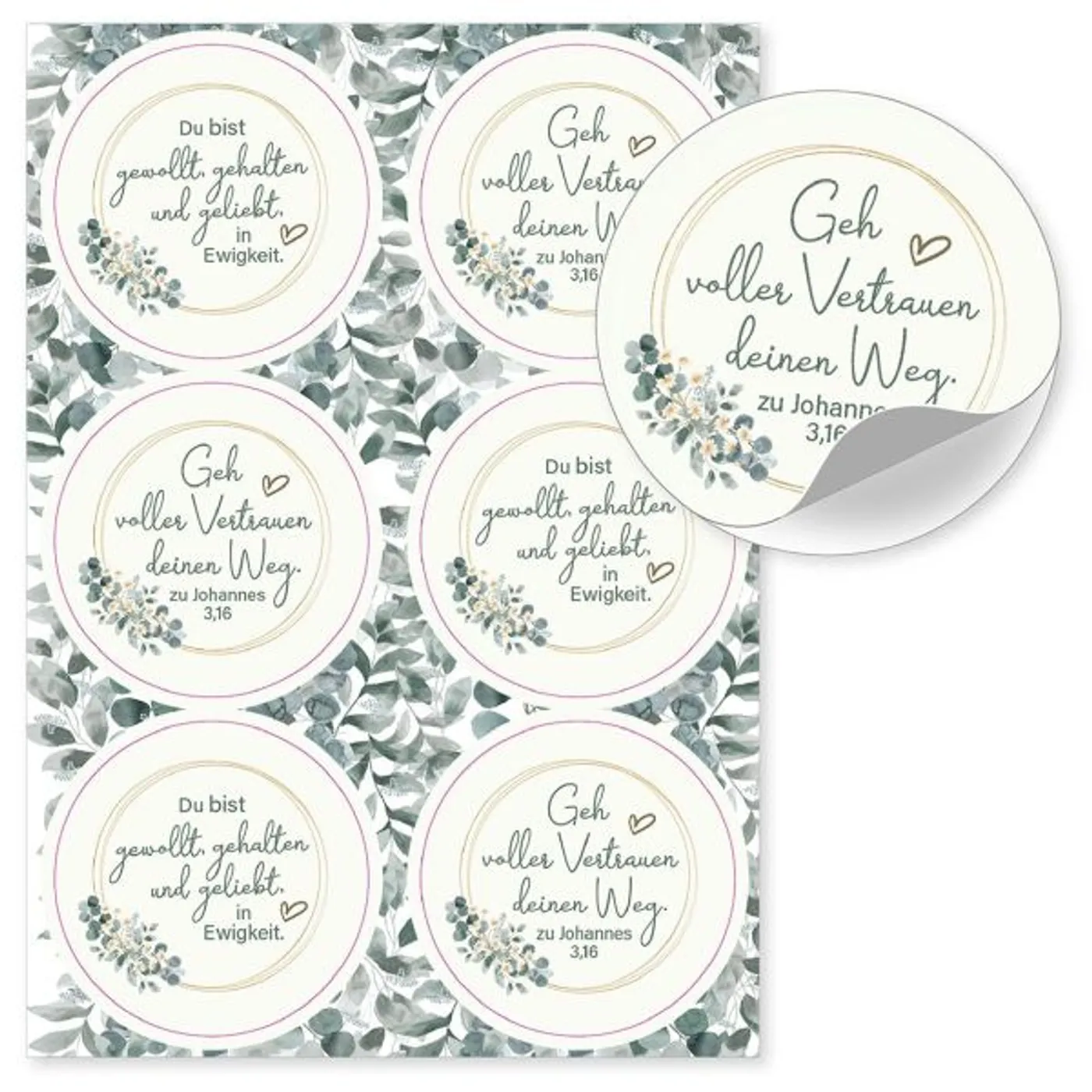 - auf jeder Grußkarte befinden sich 6 runde Sticker (Durchmesser je Sticker: ca. 45 mm)