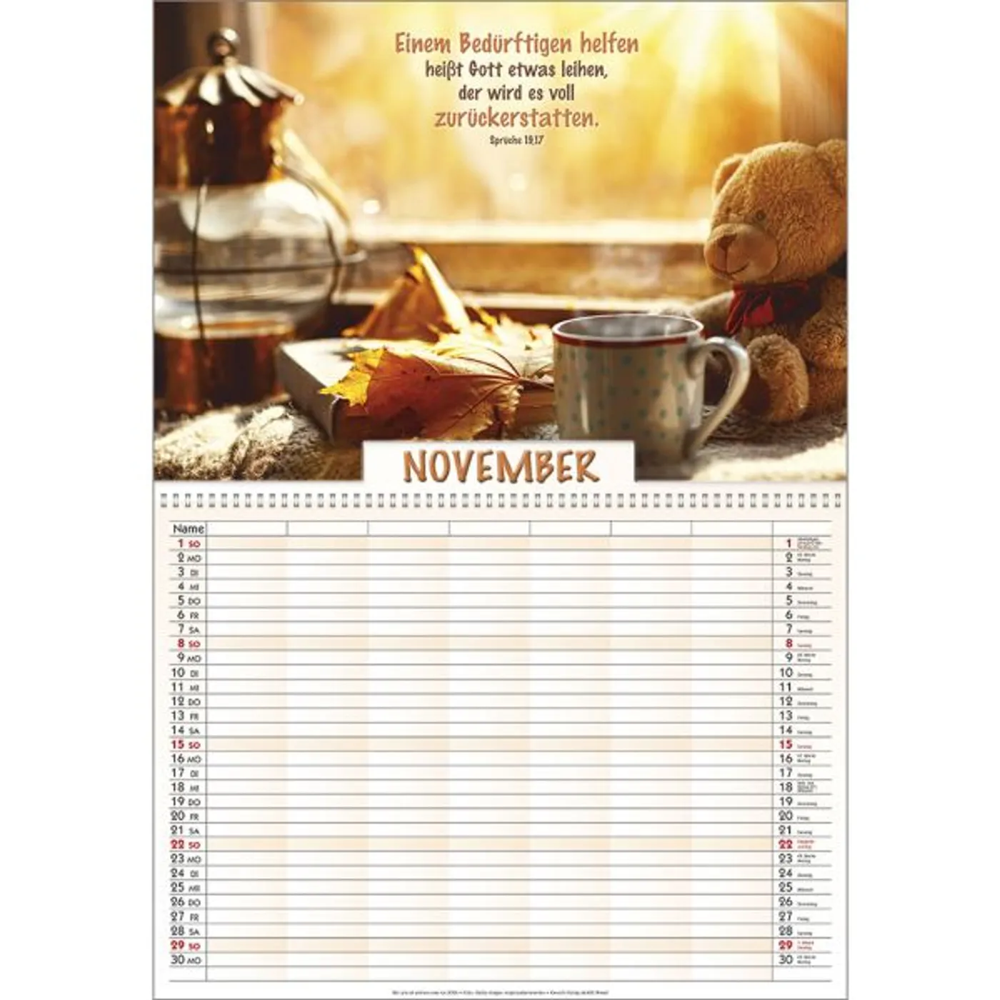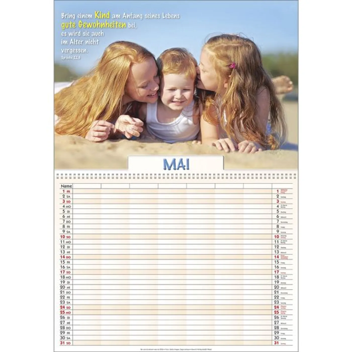 Spritziger XXL Familien-Terminkalender - mit 7 Spalten