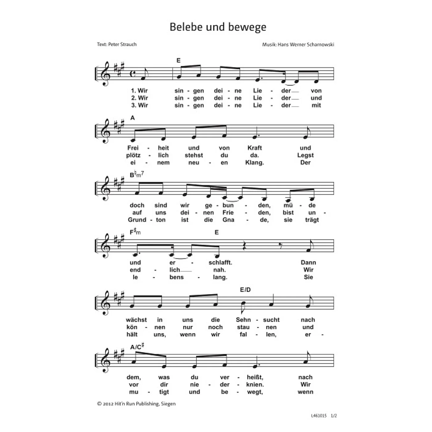 Belebe und bewege (diese Variante haben Sie gerade ausgewählt) (modern, einstimmig, mit Akkorden, E-Dur) Hans Werner Scharnowski (Komposition), Peter Strauch (Text) |