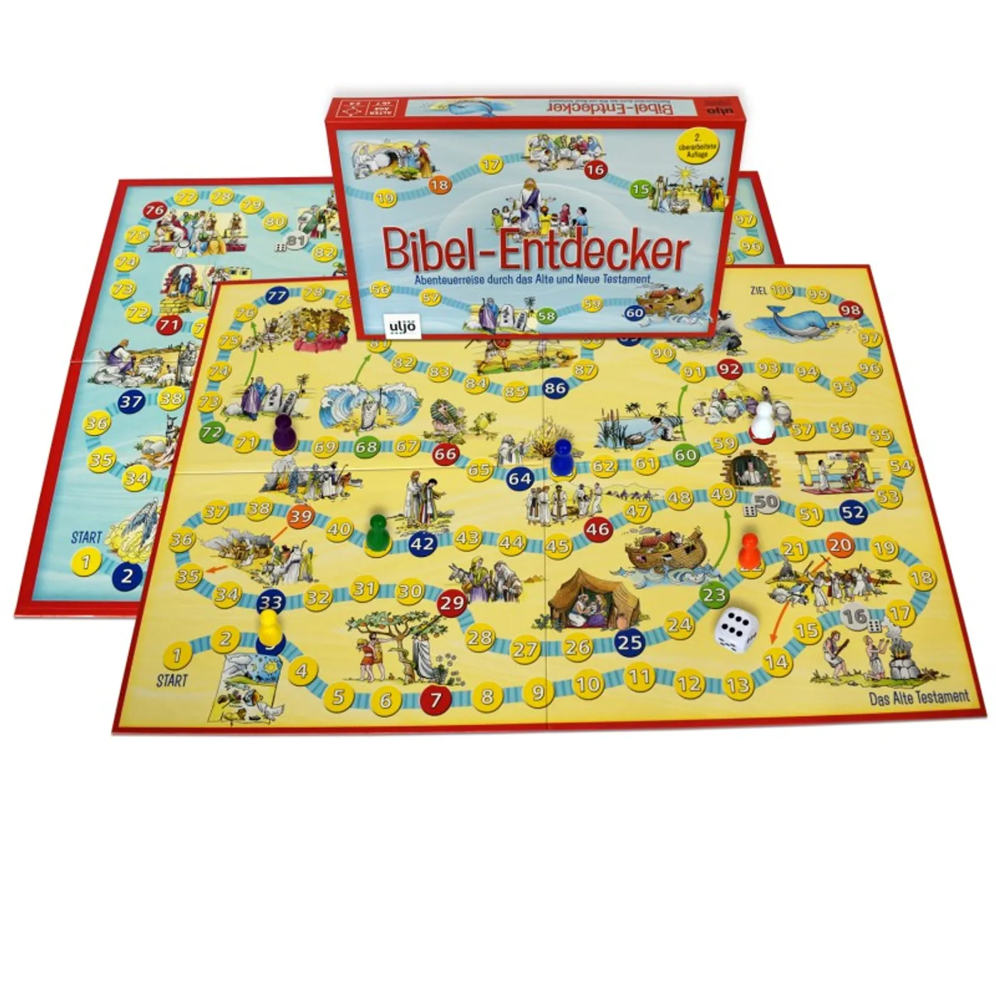 Mit dem Spiel lernen Kinder spielerisch die wichtigsten Geschichten der Bibel kennen; eignet sich auch für Kinder, die noch nicht so vertraut mit der Bibel sind, ein unterhaltsames Familienspiel auch ideal für Vorschulkinder, wenn z.B. Papa und Mama oder Oma und Opa die Bibelgeschichten vorlesen