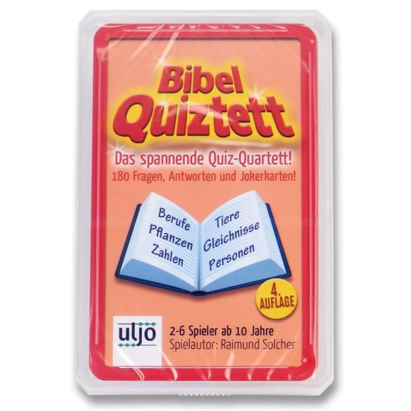 Spannendes Bibel-Quiztett von Spieleautor Raimund Solcher mit 180 Fragen und Antworten, inklusive 3 Jokerkarten. Wird in einer stabilen Klarsichtbox geliefert. 2 bis 6 Spieler ab 10 Jahre.