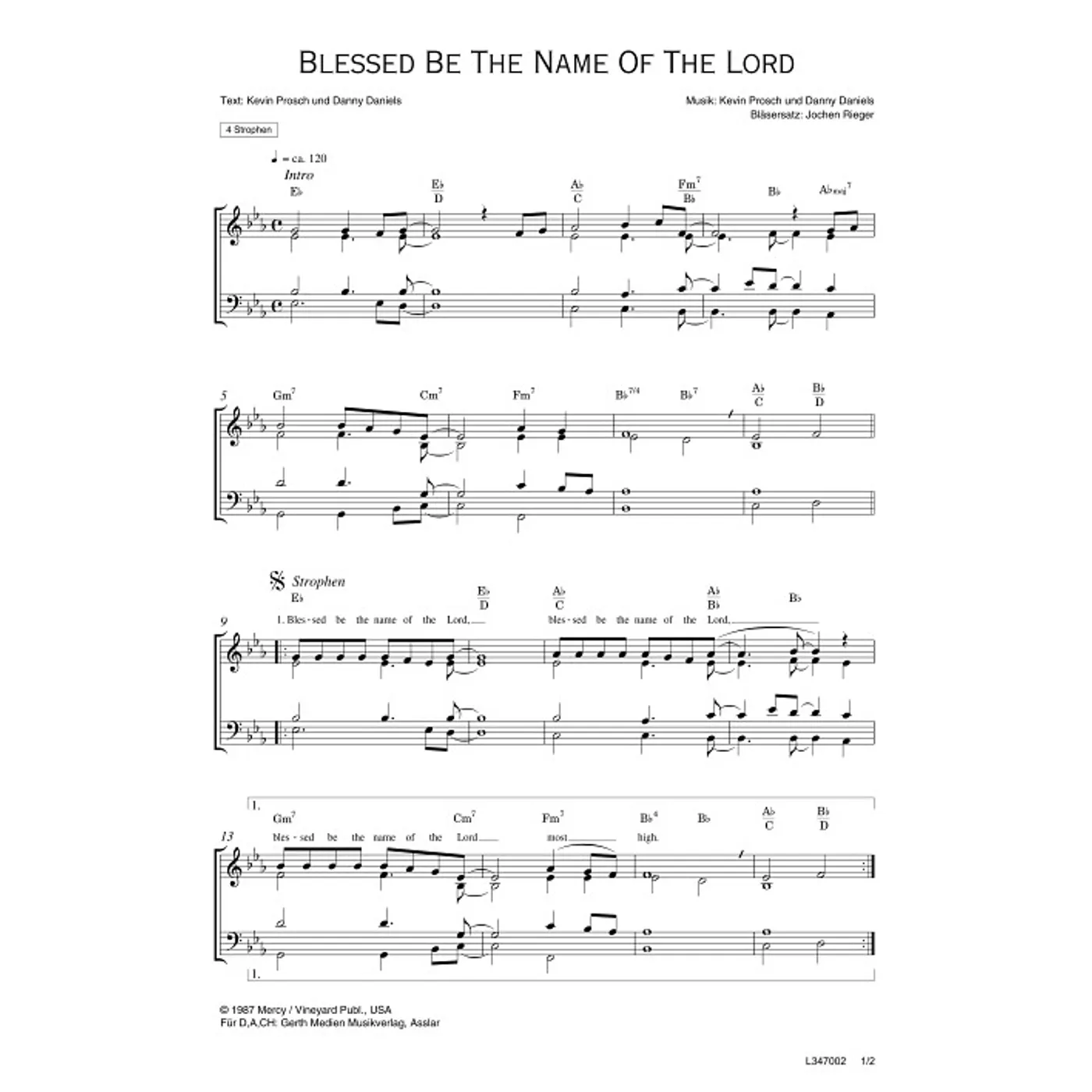 Blessed Be The Name Of The Lord (diese Variante haben Sie gerade ausgewählt) (Bläser, Bläserpartitur, Partituren, mit Akkorden, vierstimmig, Es-Dur) Danny Daniels (Text), Kevin Prosch (Text), Jochen Rieger (Bläsersatz) |