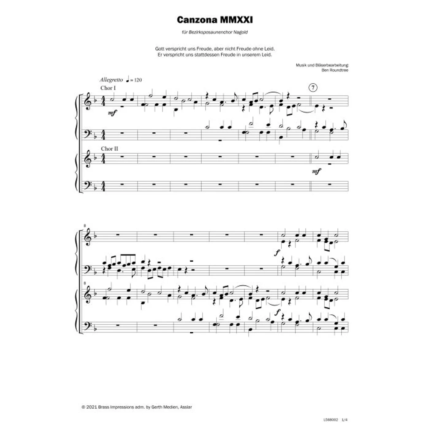 Bläserpartitur für 4-stimmigen Posaunenchor / C-Schreibweise