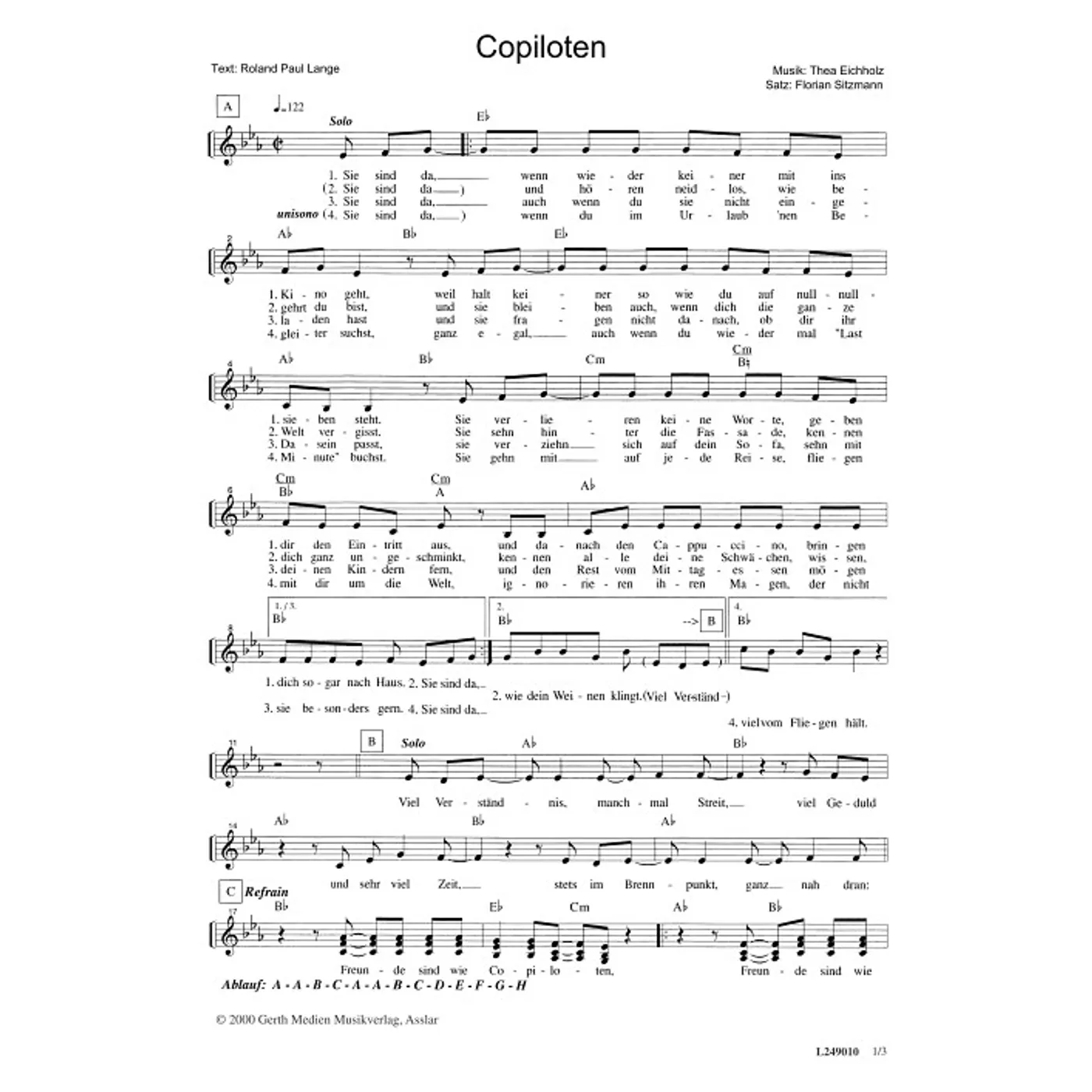(Solostimme, dreistimmig, gemischter Chor, mit Akkorden, Es-Dur) Thea Eichholz (Komposition), Roland Paul Lange (Text), Florian Sitzmann (Chorsatz)