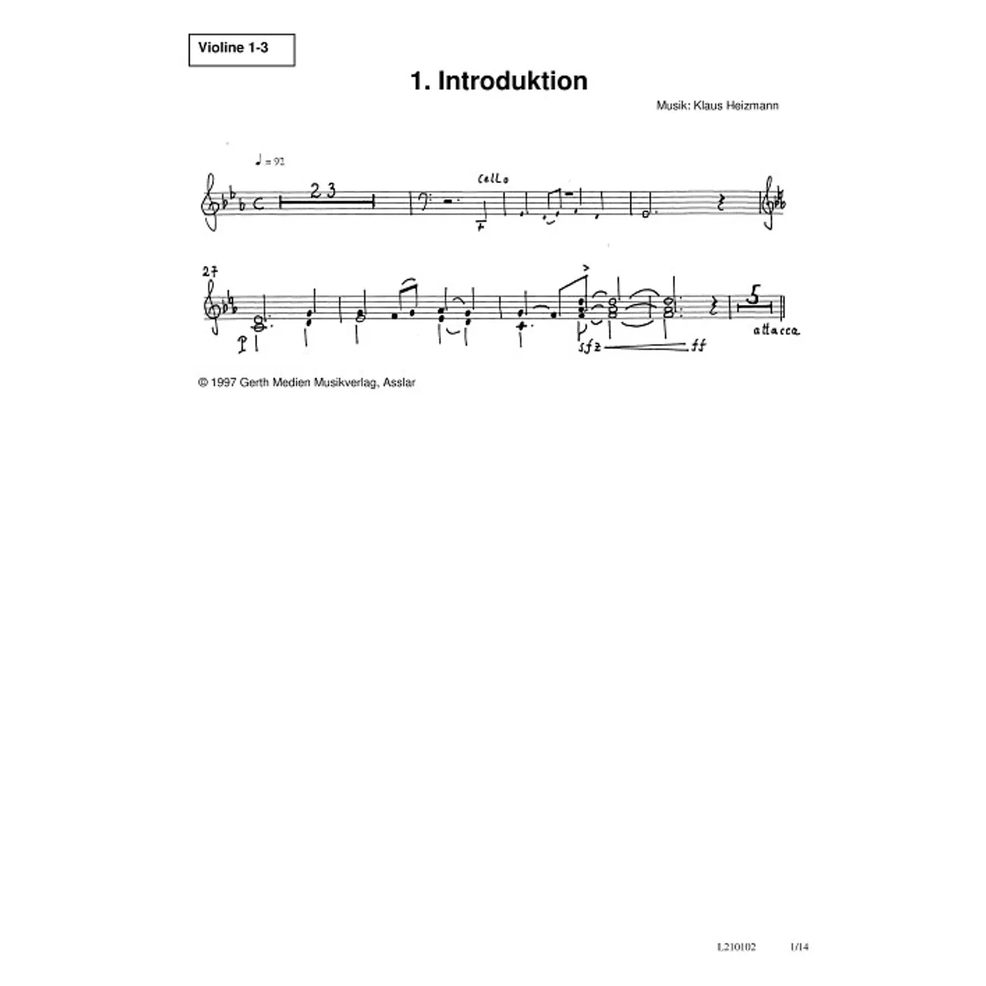 Dank für Golgatha (Violine 1-3) (diese Variante haben Sie gerade ausgewählt) (Kantate, Orchestereinzelstimme) Klaus Heizmann (Komposition), Johannes Jourdan (Text) |