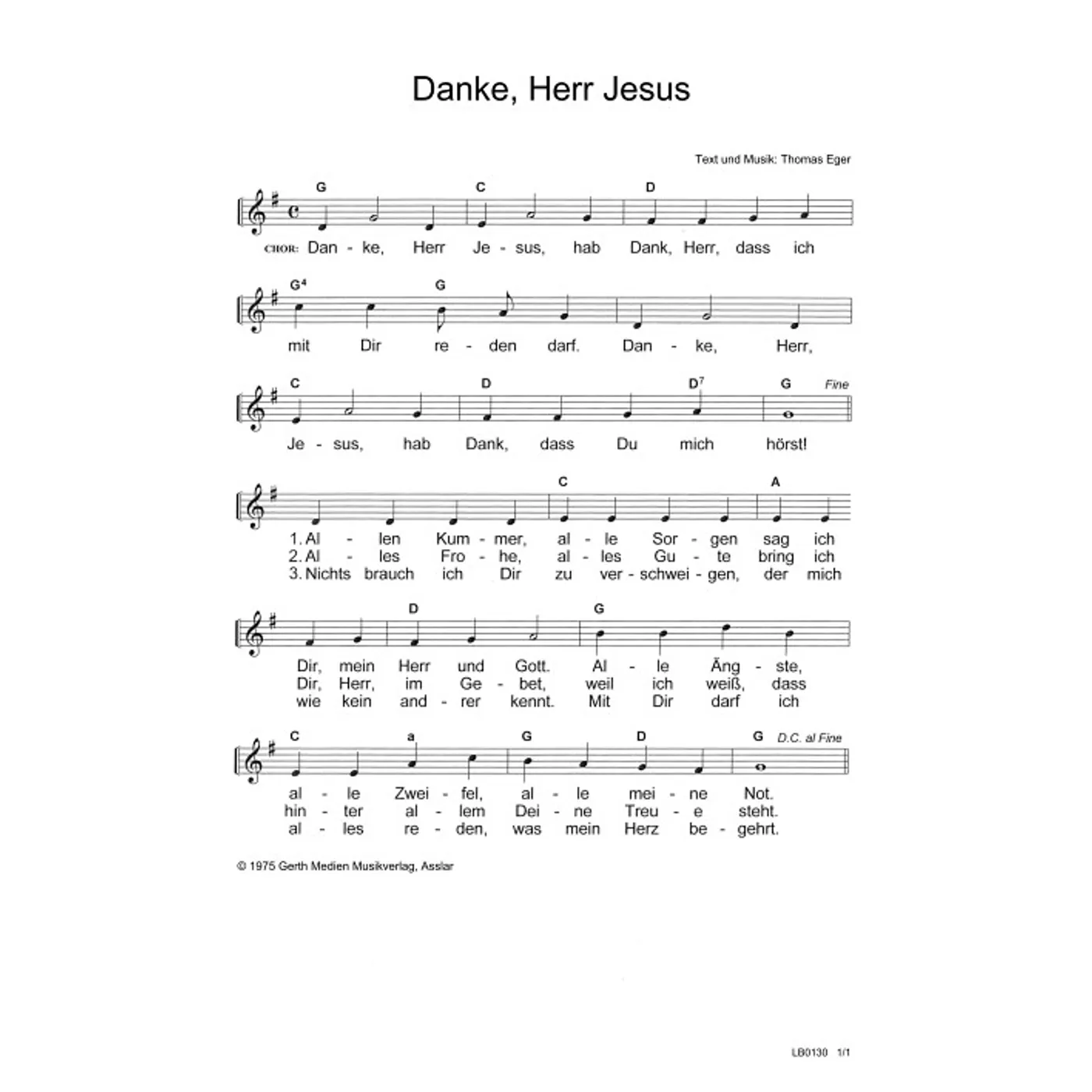 Danke, Herr Jesus (diese Variante haben Sie gerade ausgewählt) (einstimmig, mit Akkorden, G-Dur) Thomas Eger (Komposition, Text) |