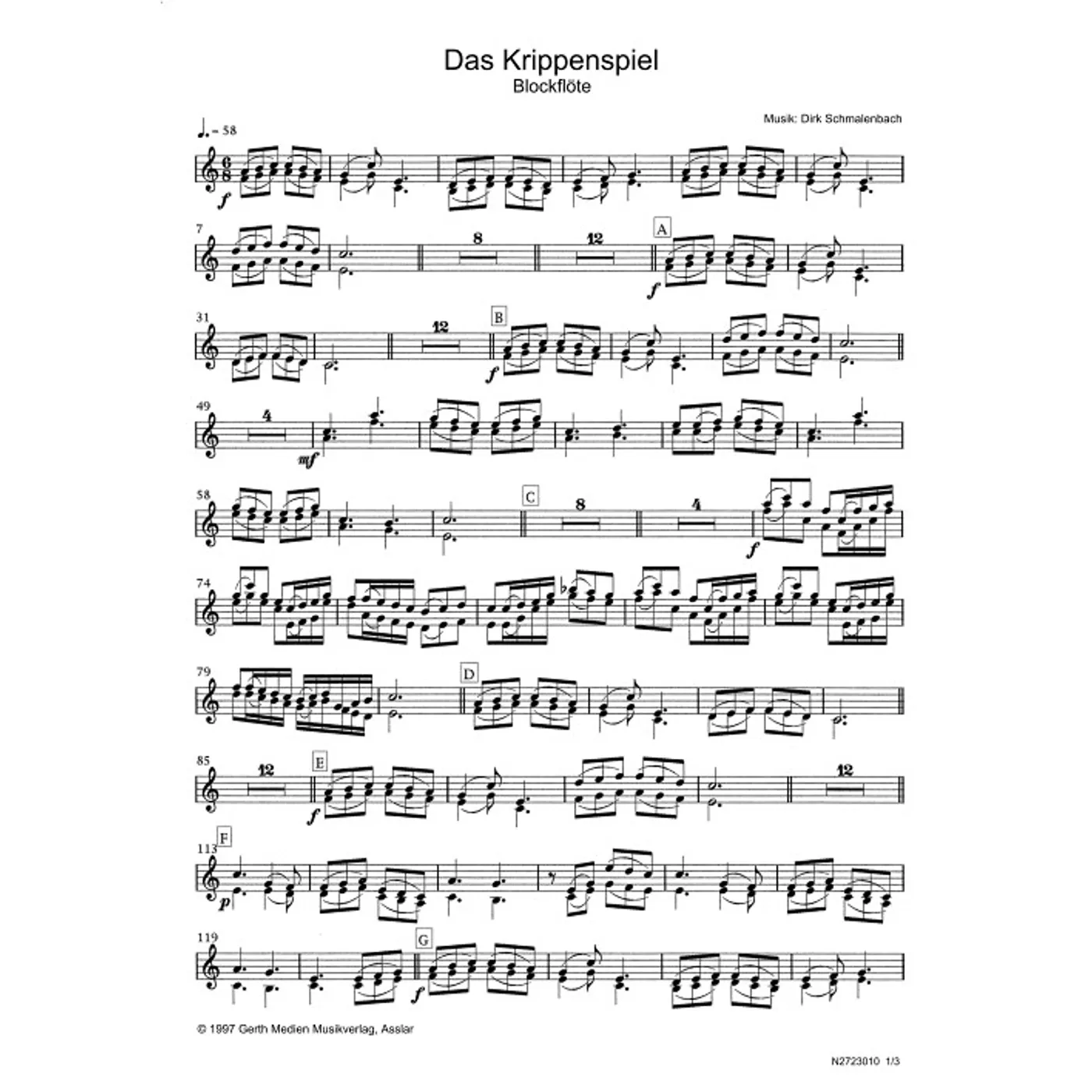 Das Krippenspiel (Blockflöte) (diese Variante haben Sie gerade ausgewählt) (Orchestereinzelstimme) Dirk Schmalenbach (Komposition) |