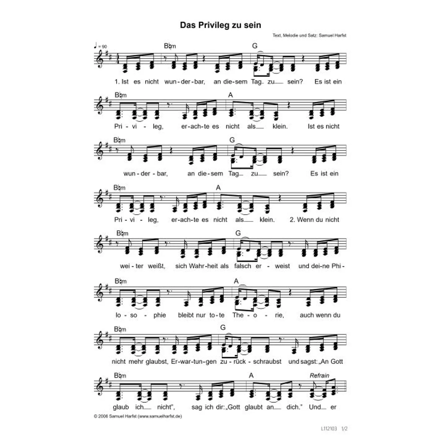 Das Privileg zu sein (diese Variante haben Sie gerade ausgewählt) (dreistimmig, mit Akkorden, D-Dur) Samuel Harfst (Komposition, Text) |