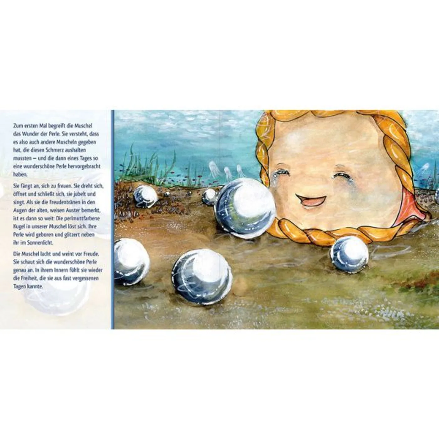 Ein sehr ermutigender Bildband, der die Seele berührt. Was im ersten Moment wie ein Kinder-Märchen aussieht, eignet sich genauso gut als inspirierende Lektüre für Erwachsene. Der Leser taucht ein in die anrührende Geschichte einer Muschel, die durch eine schmerzhafte Verletzung schließlich zu innerem Reichtum kommt und ungeahnte Anerkennung findet.