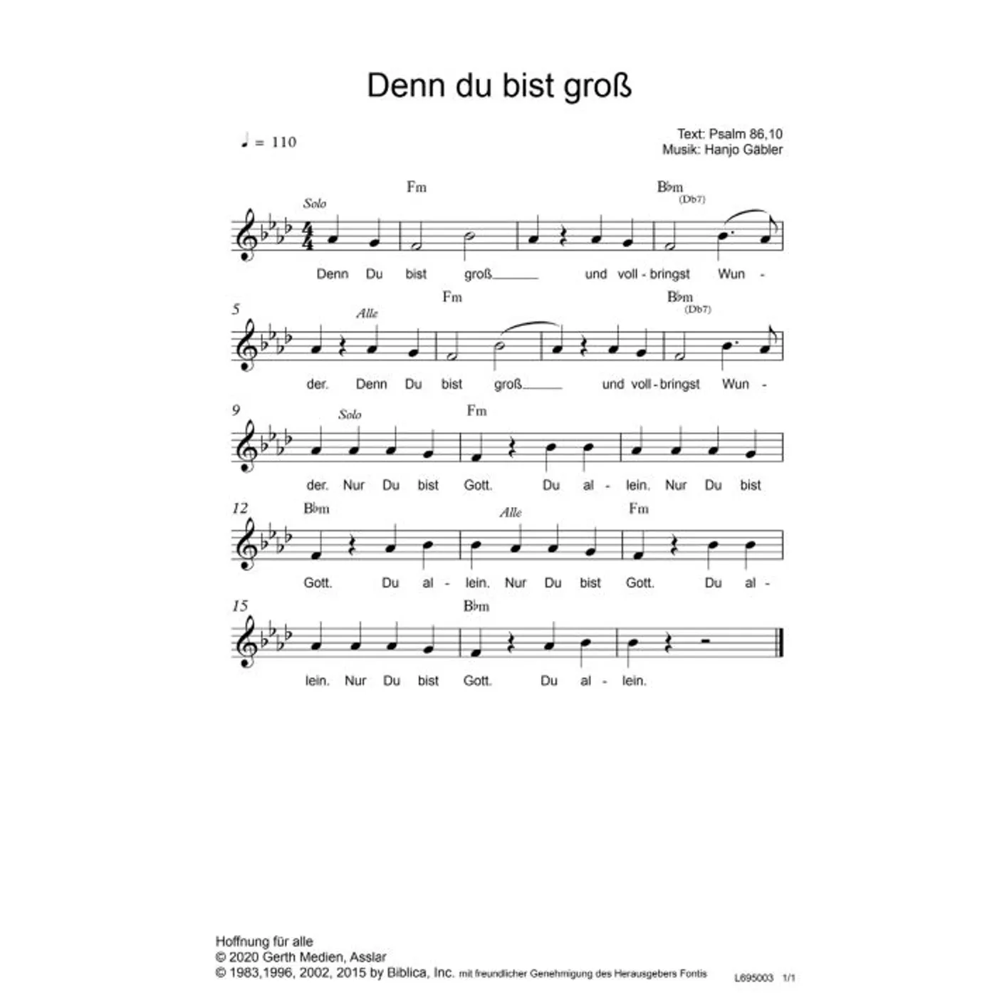 Denn du bist groß (diese Variante haben Sie gerade ausgewählt) (einstimmig, mit Akkorden, F-Moll) Hanjo Gäbler (Komposition) |