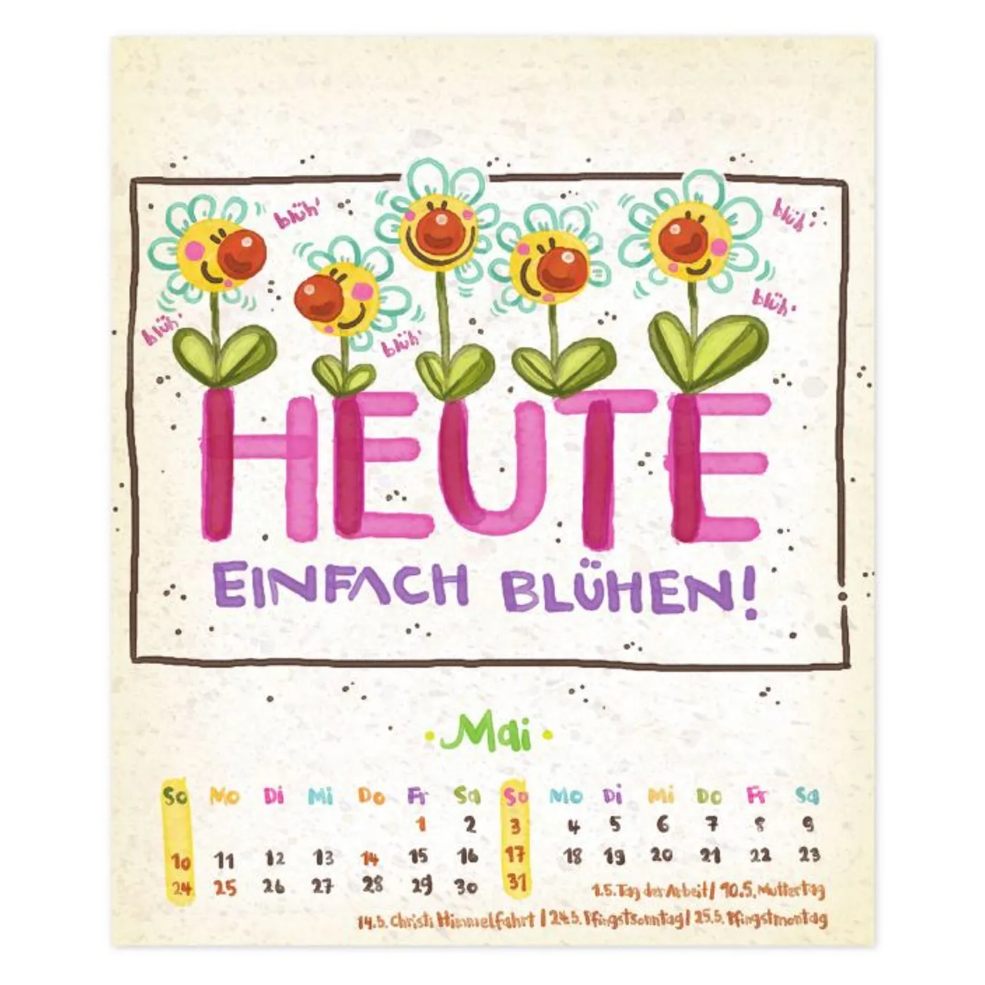 Dieser witzig-bunte Aufstellkalender begleitet humorvoll und einfühlsam durch das Jahr 2026. Er macht Mut und bietet für jeden Monat eine freche illustrierte Botschaft.