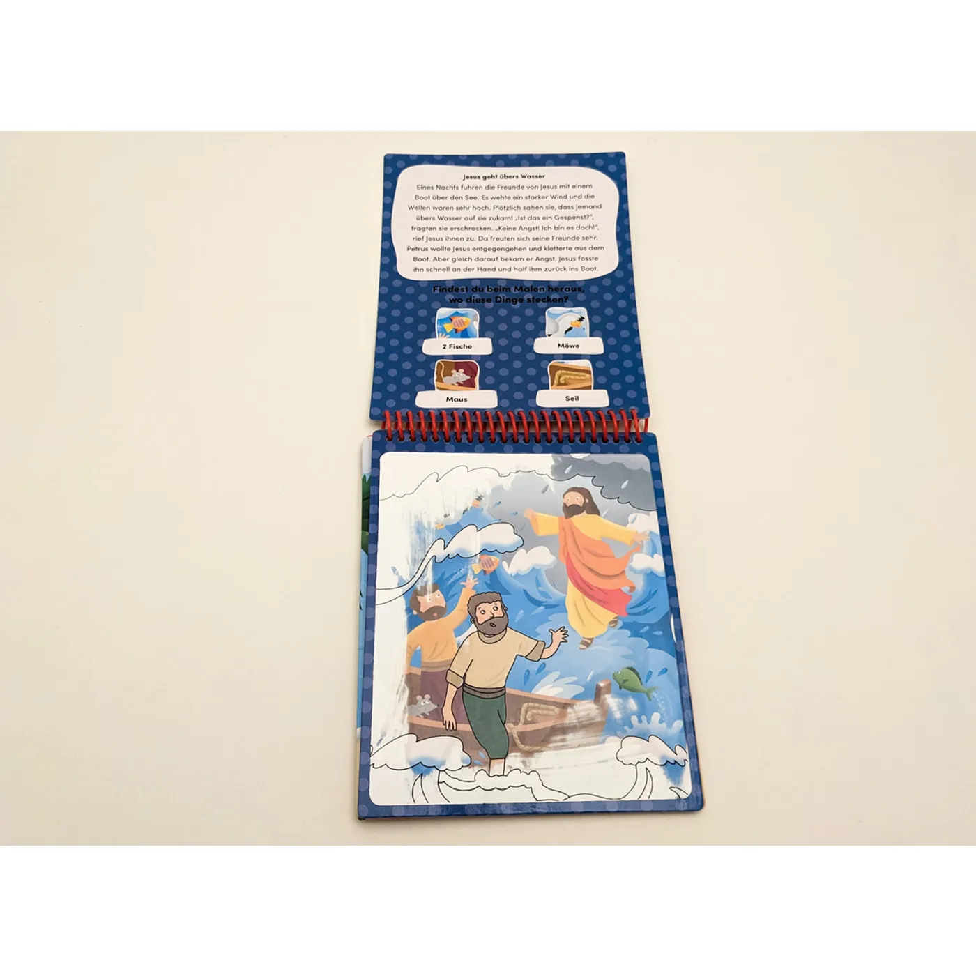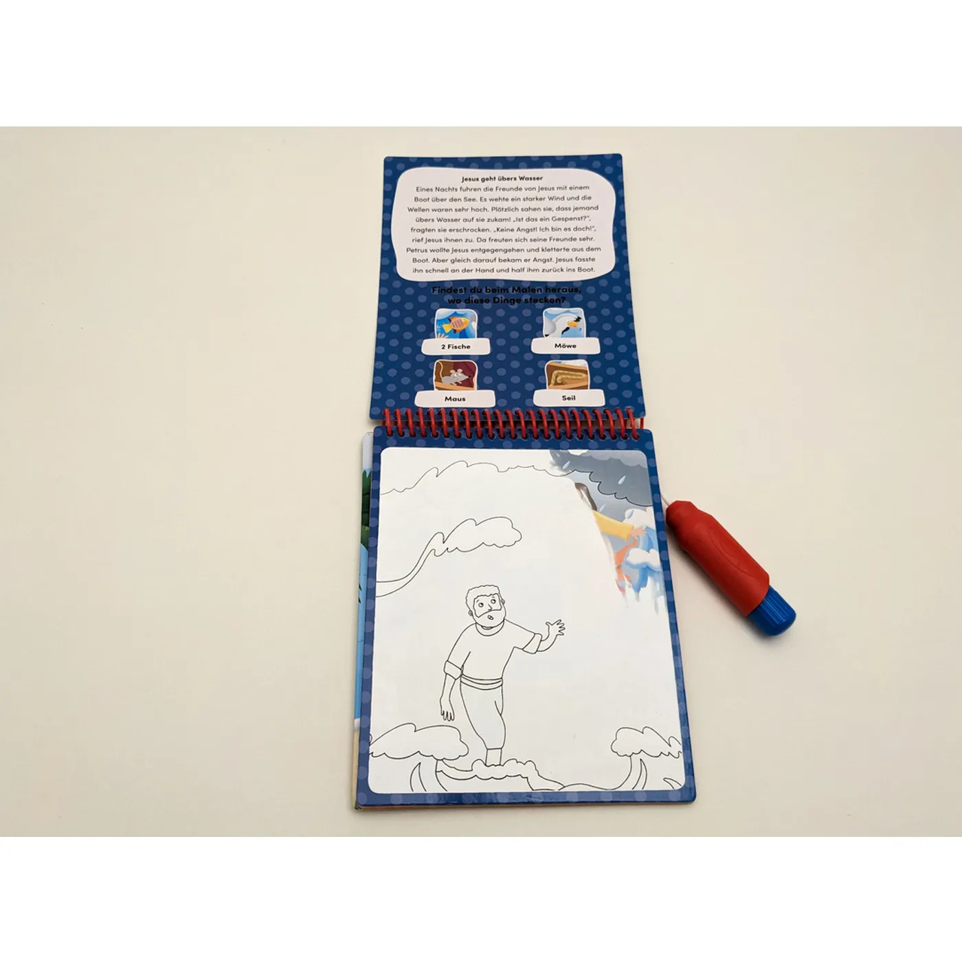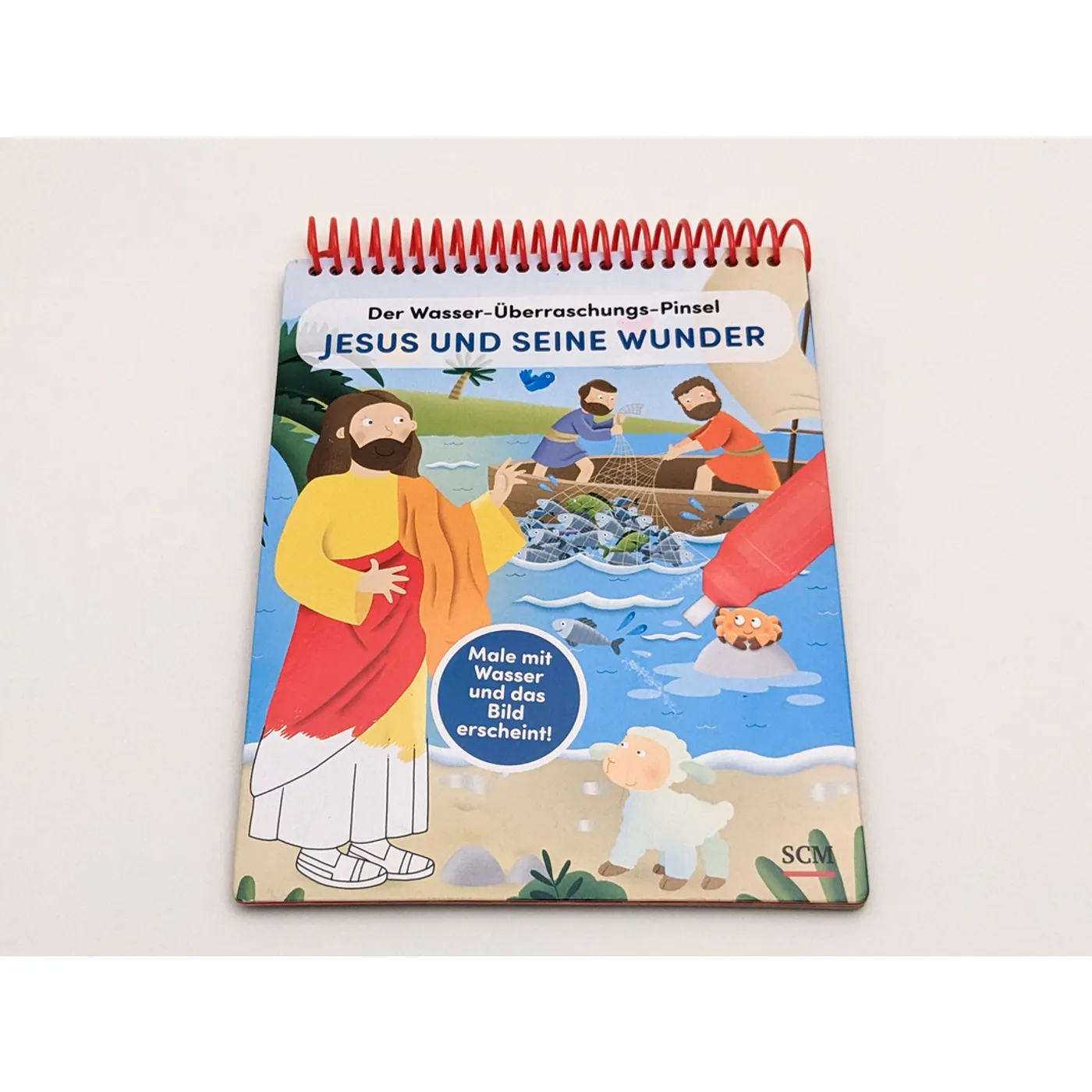 Mit diesem außergewöhnlichen Malbuch können schon die Kleinsten auf spielerische Weise etwas über die Wunder erfahren, die Jesus getan hat: Wenn man mit dem beiliegenden Pinsel über die weißen Flächen fährt, werden die farbigen Illustrationen sichtbar.
