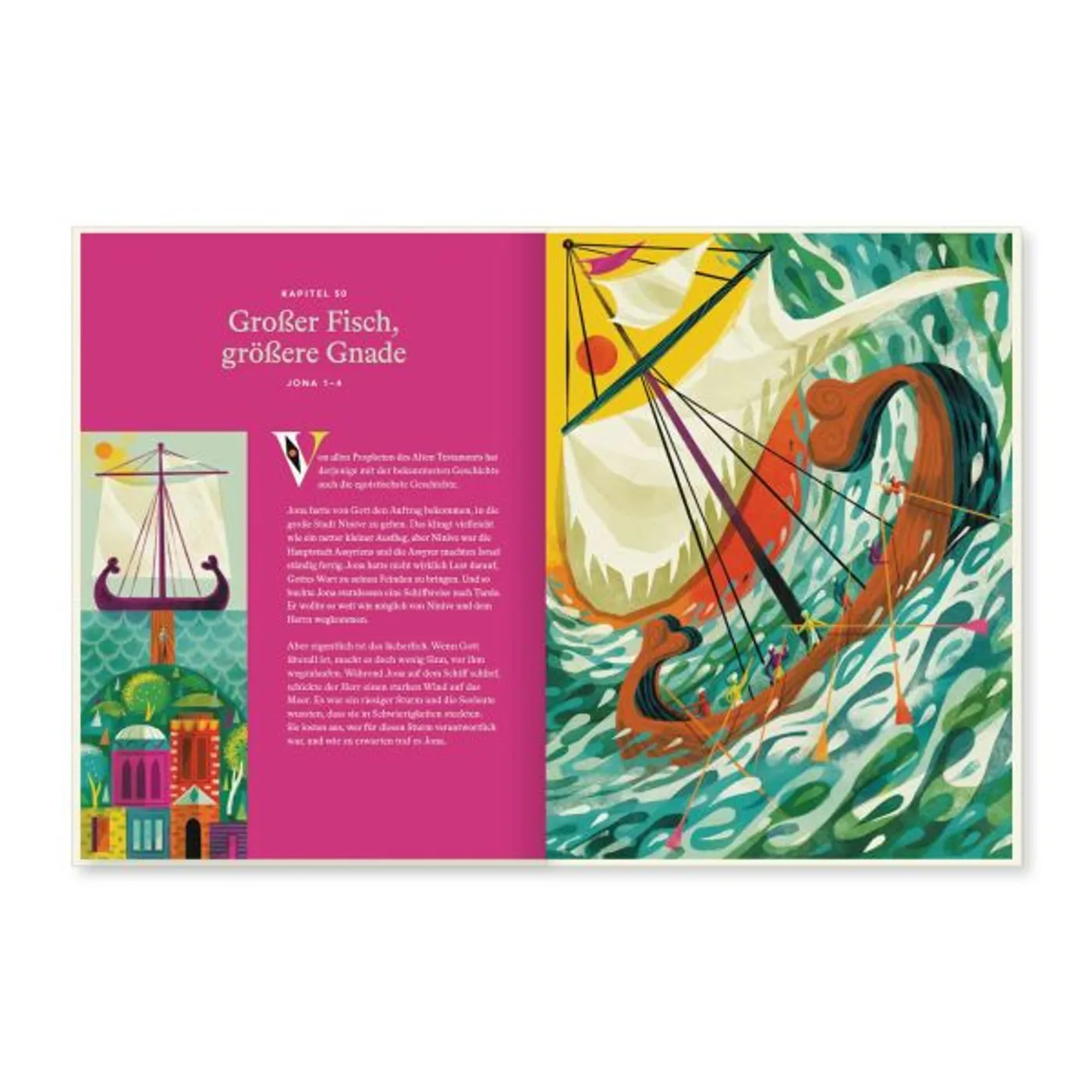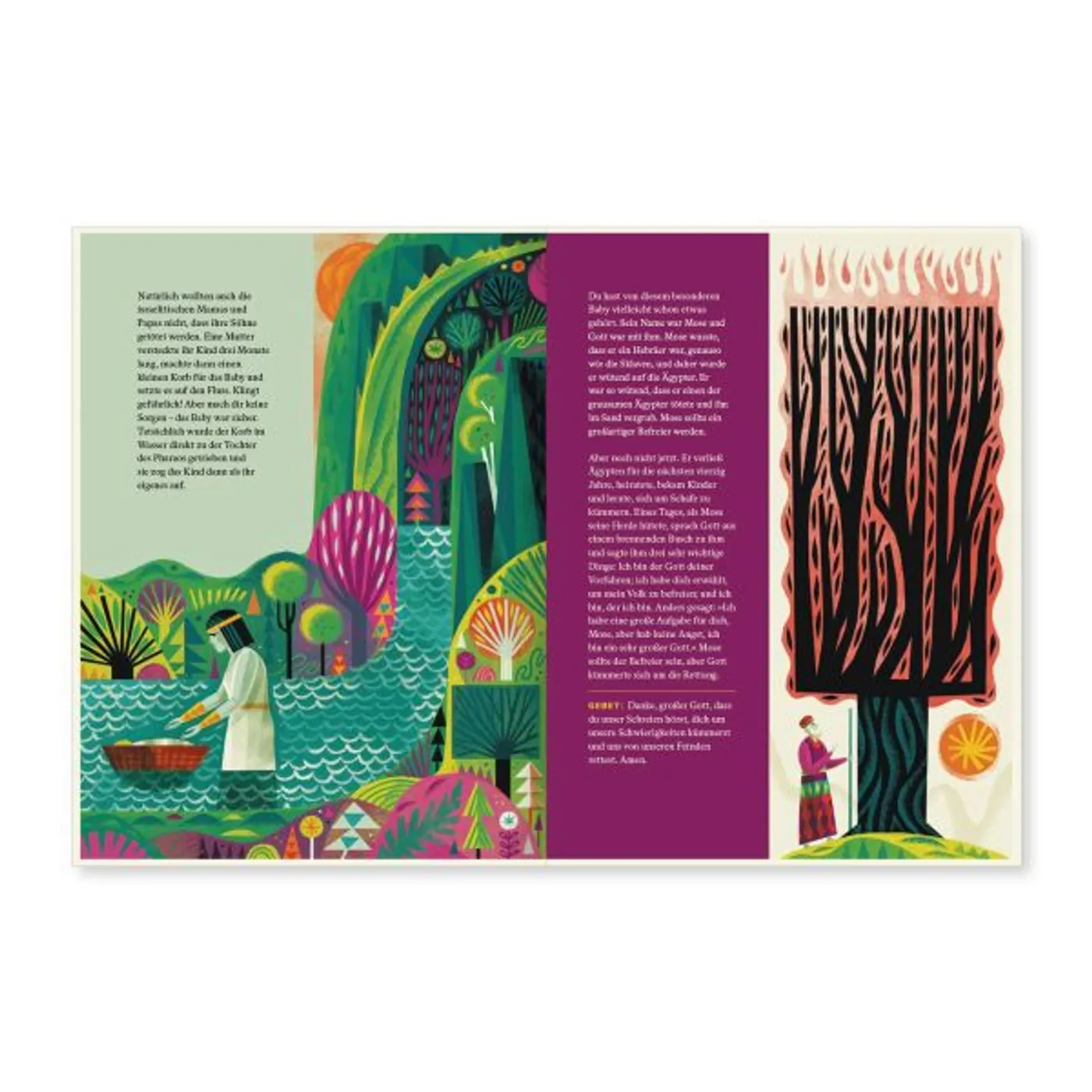 Auch greift er Themen auf, die sonst üblicherweise kaum in Kinderbibeln auftauchen. Oder hast du schon mal in einer Kinderbibel von den Töchtern Zelofhads gelesen? Oder etwas von den Propheten Hosea, Amos, Sacharja, Maleachi gehört?