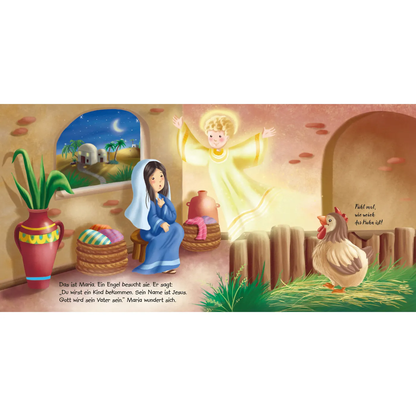 In dieser Weihnachtsgeschichte können Kinder fühlen, wie flauschig das Fell des Schäfchens ist, das mit den Hirten zur Krippe geht! Und der Weg, auf dem die drei Weisen reiten, ist ganz rau. - Wenn Kinder das Weihnachtsgeschehen auf fühlende Weise begreifen können, wird die Geschichte von der Geburt Jesu ganz lebendig. Sie begleiten Maria und Josef, die Hirten und die Weisen. Am Ende wird klar: An Weihnachten feiern wir, dass Jesus geboren wurde, weil Gott uns liebt.