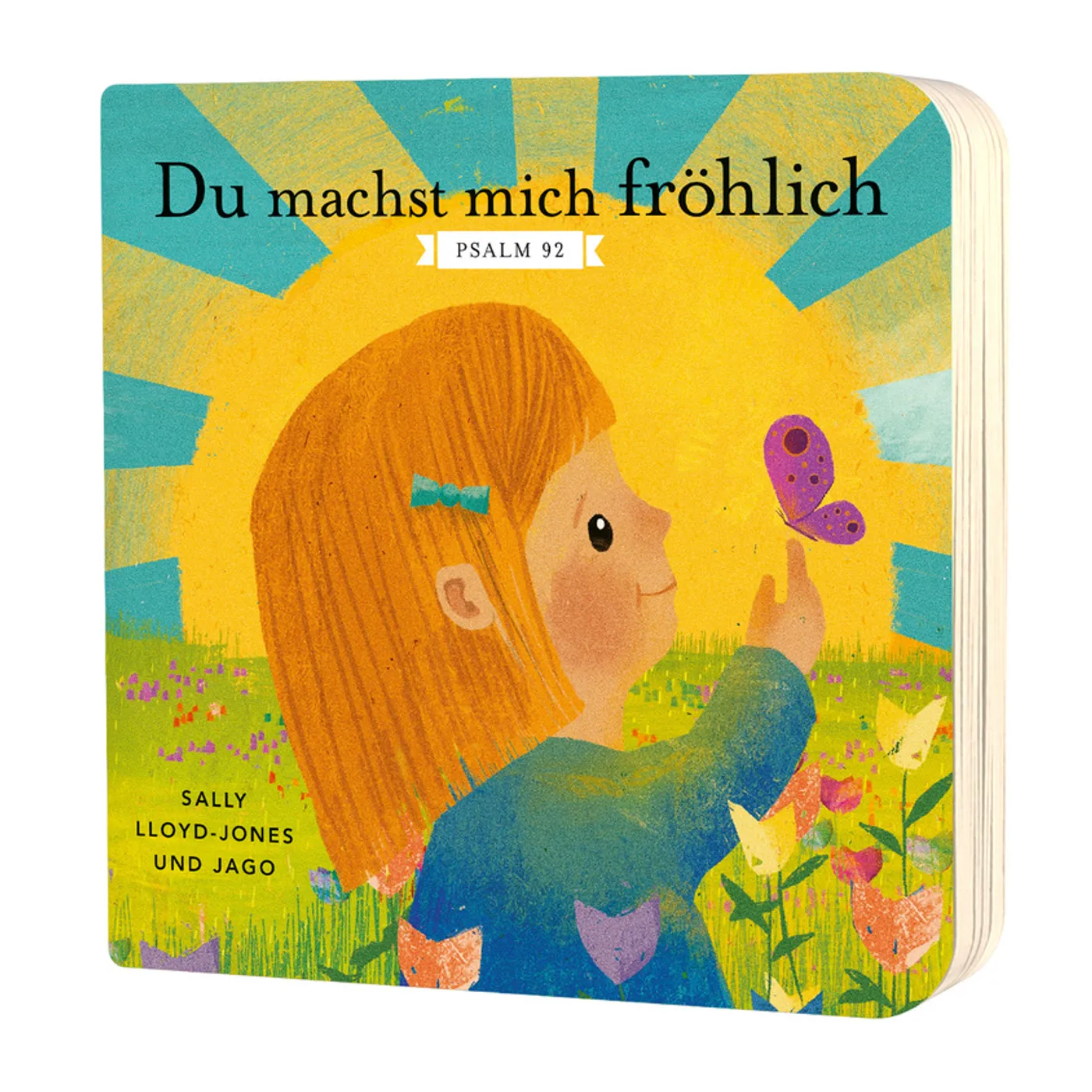Hinter dem Titel "Du machst mich fröhlich - Psalm 92" verbirgt sich ein Pappbilderbuch für die Zielgruppe von Kindern ab 2 Jahren. Es ist das Werk der Autorin Sally Lloyd-Jones sowie des Illustrators Jago.