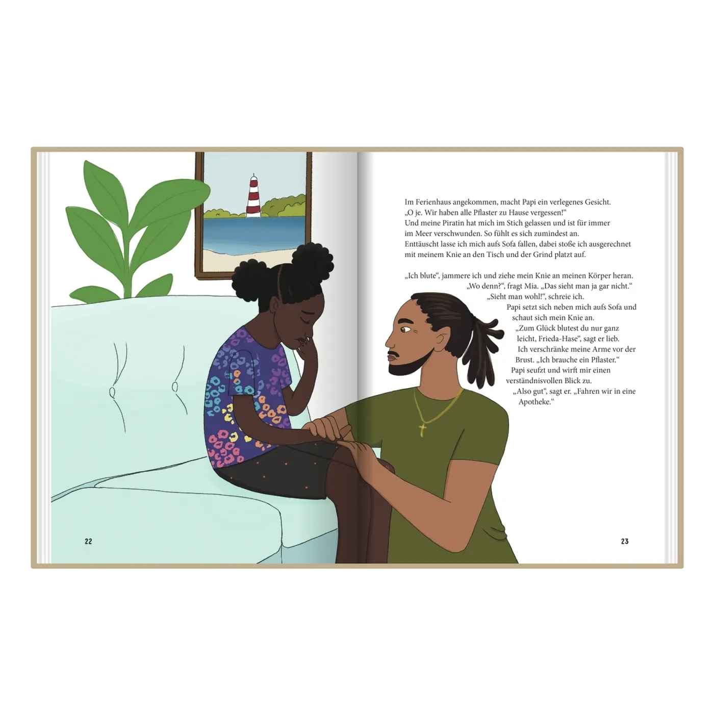 Frieda fährt mit ihrer Familie in den Urlaub und geht dort auf die Suche nach einem verschollenen Piratenschatz. Doch bei einer Wattwanderung verliert sie ihr Pflaster. Ein Neues muss her. Als die Apothekerin vor Ort ihr die typischen hellbeigen Pflaster verkaufen will, besteht sie mutig auf ein Pflaster in ihrer eigenen Hautfarbe und gibt damit allen einen wichtigen Denkanstoß.