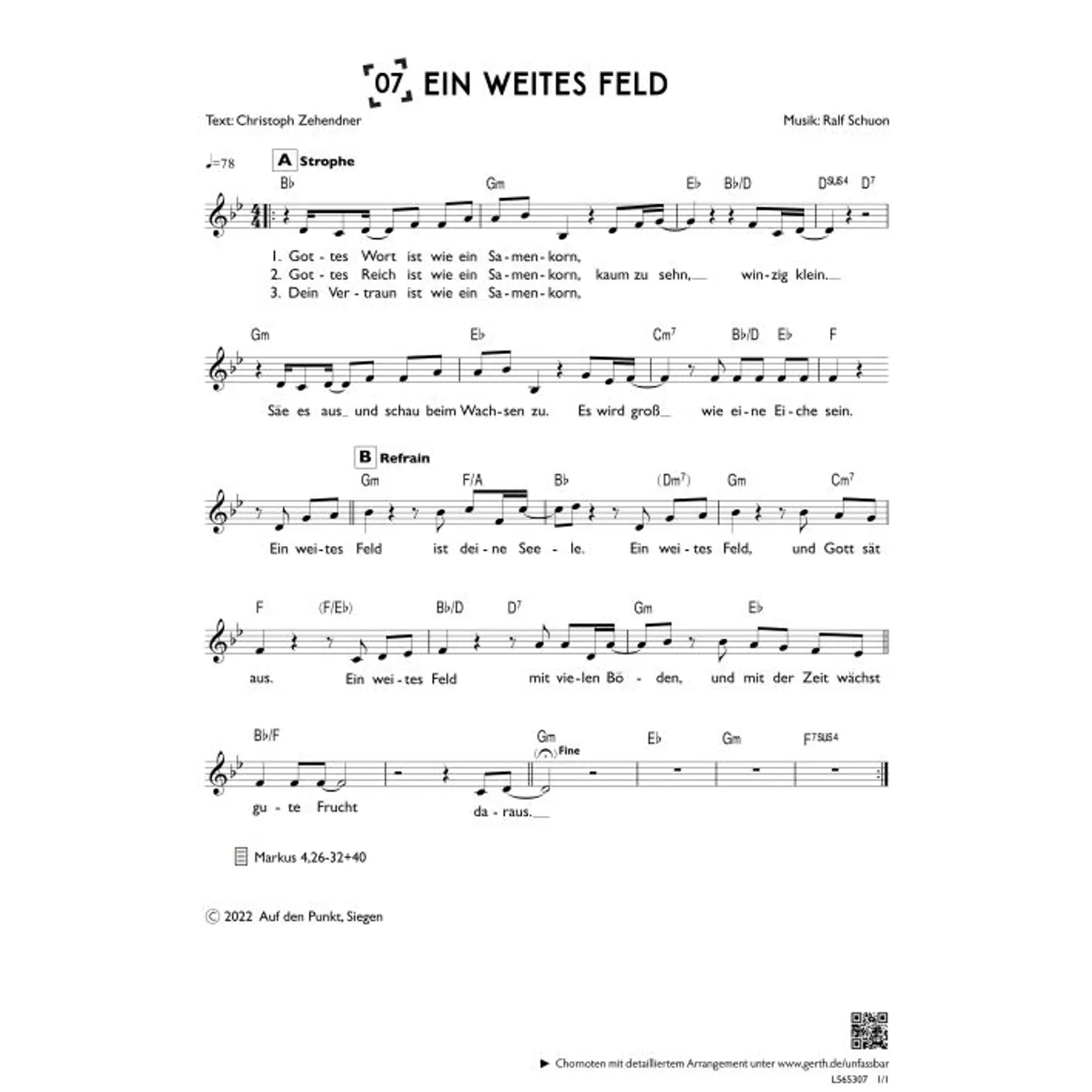 Ein weites Feld (Bandsheet) (Gemeindelied, mit Akkorden, B-Dur) Christoph Zehendner (Text), Ralf Schuon (Komposition) | Gemeindelied, mit Akkorden, B-Dur | 1,50 € | ||