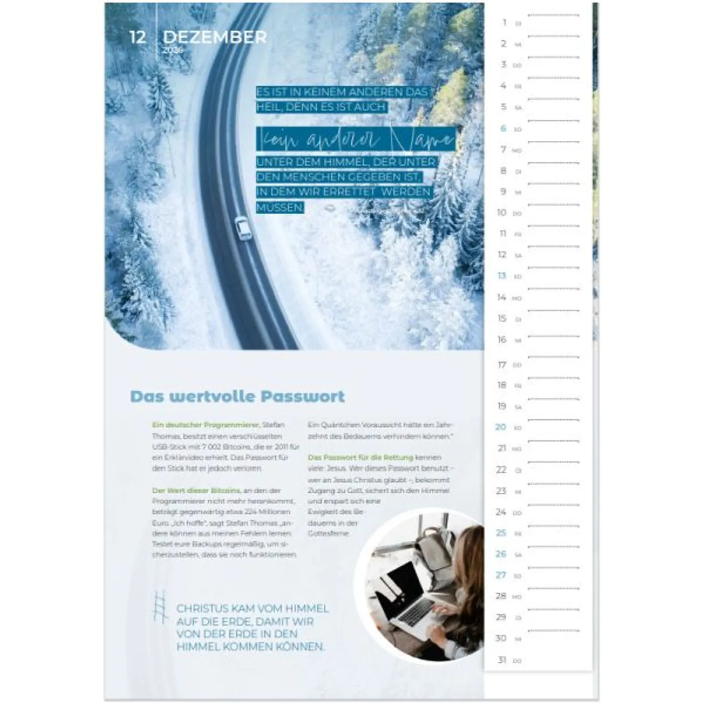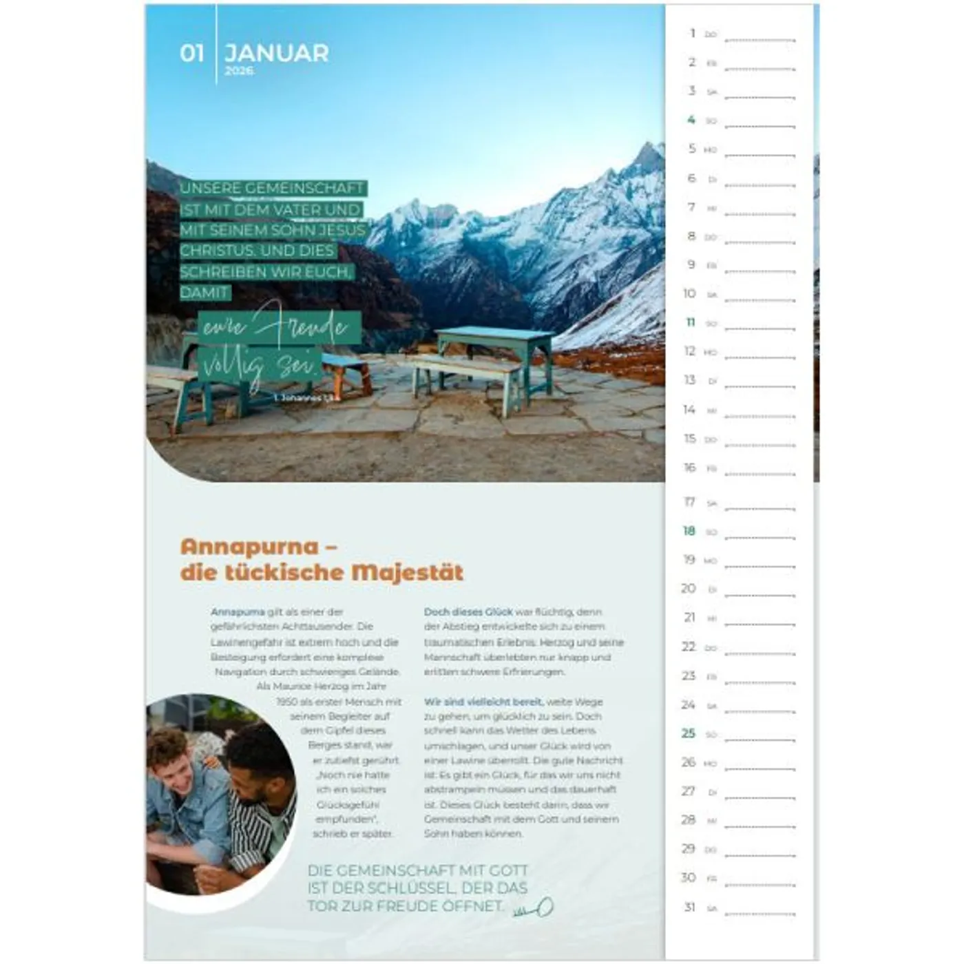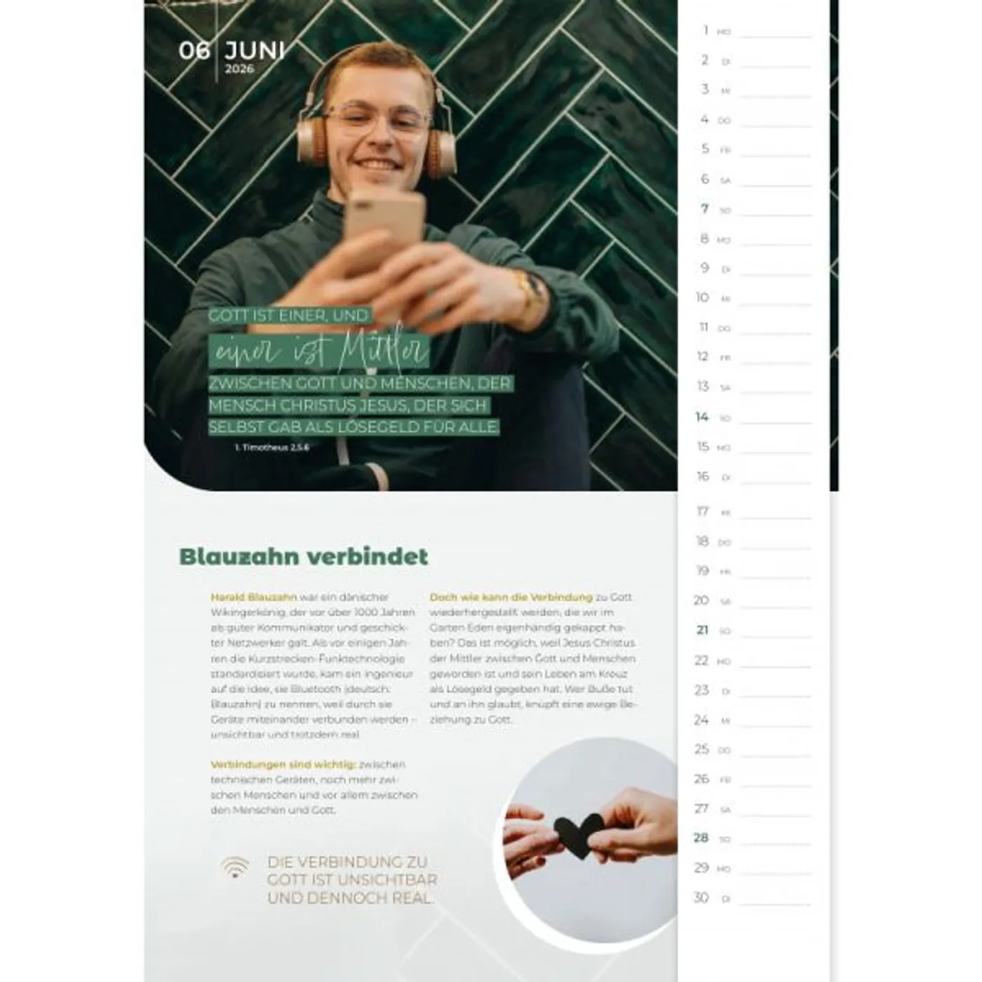 Ein beliebter Wandkalender/Monatskalender (nicht nur) für junge Leute. Mit tollen Fotos, vielen interessanten Gedankenanstößen, Platz für persönliche Termine, Sonderseiten mit hilfreichen Tipps und Ferien in der Übersicht. Für Verteilzwecke bestens geeignet.