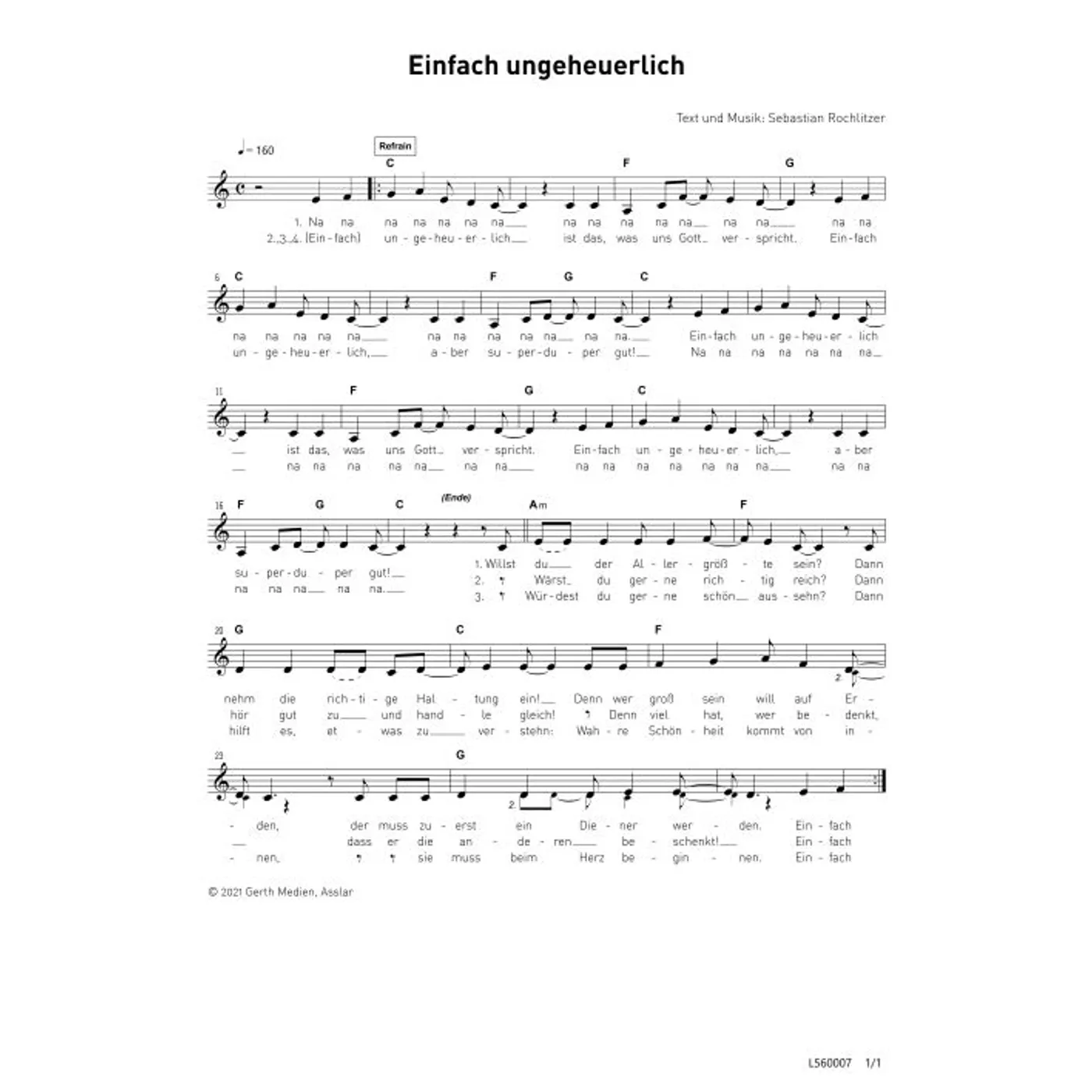 Einfach ungeheuerlich (diese Variante haben Sie gerade ausgewählt) (einstimmig, mit Akkorden, C-Dur) Sebastian Rochlitzer (Komposition, Text) |