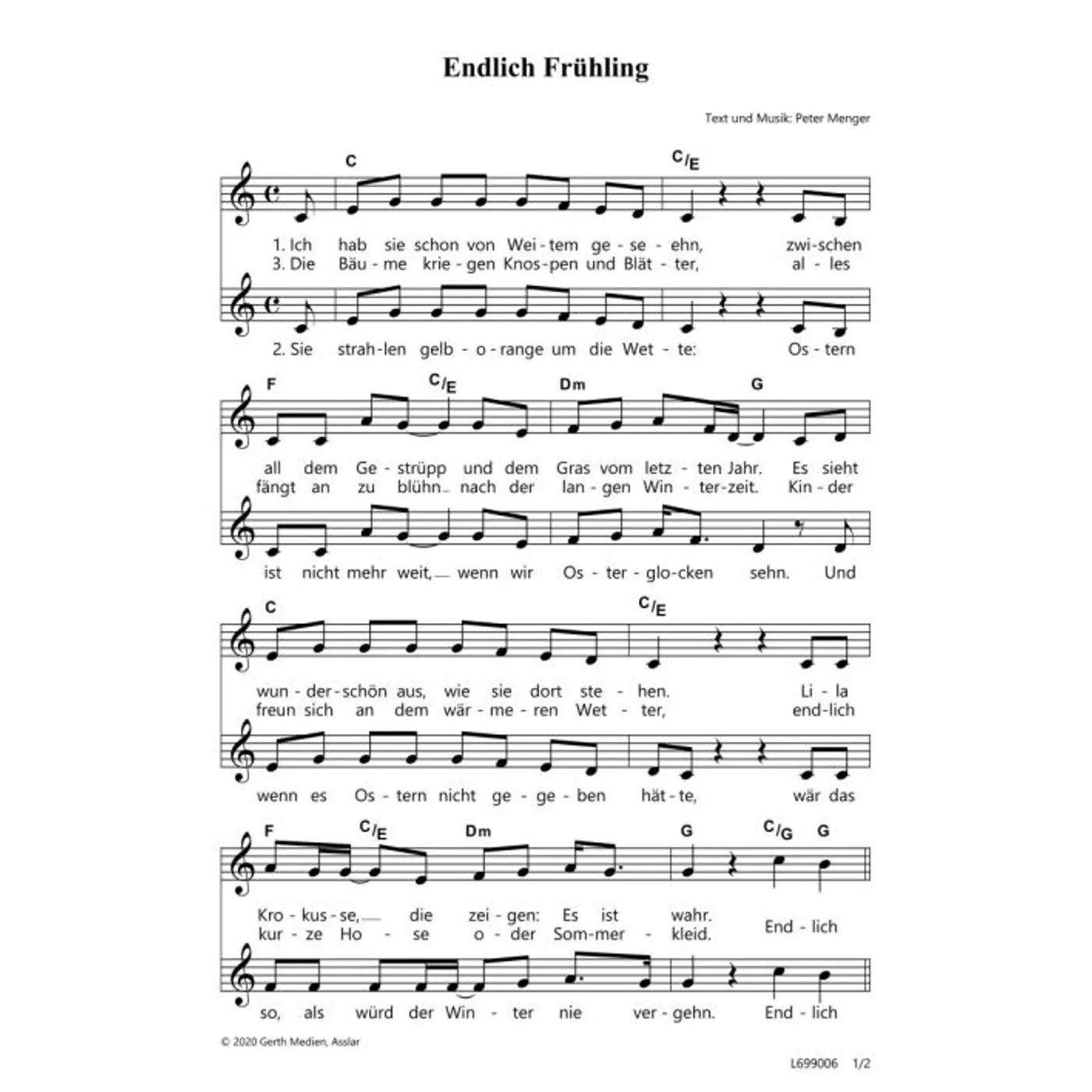 Endlich Frühling (diese Variante haben Sie gerade ausgewählt) (einstimmig, mit Akkorden, C-Dur) Peter Menger (Komposition, Text) |