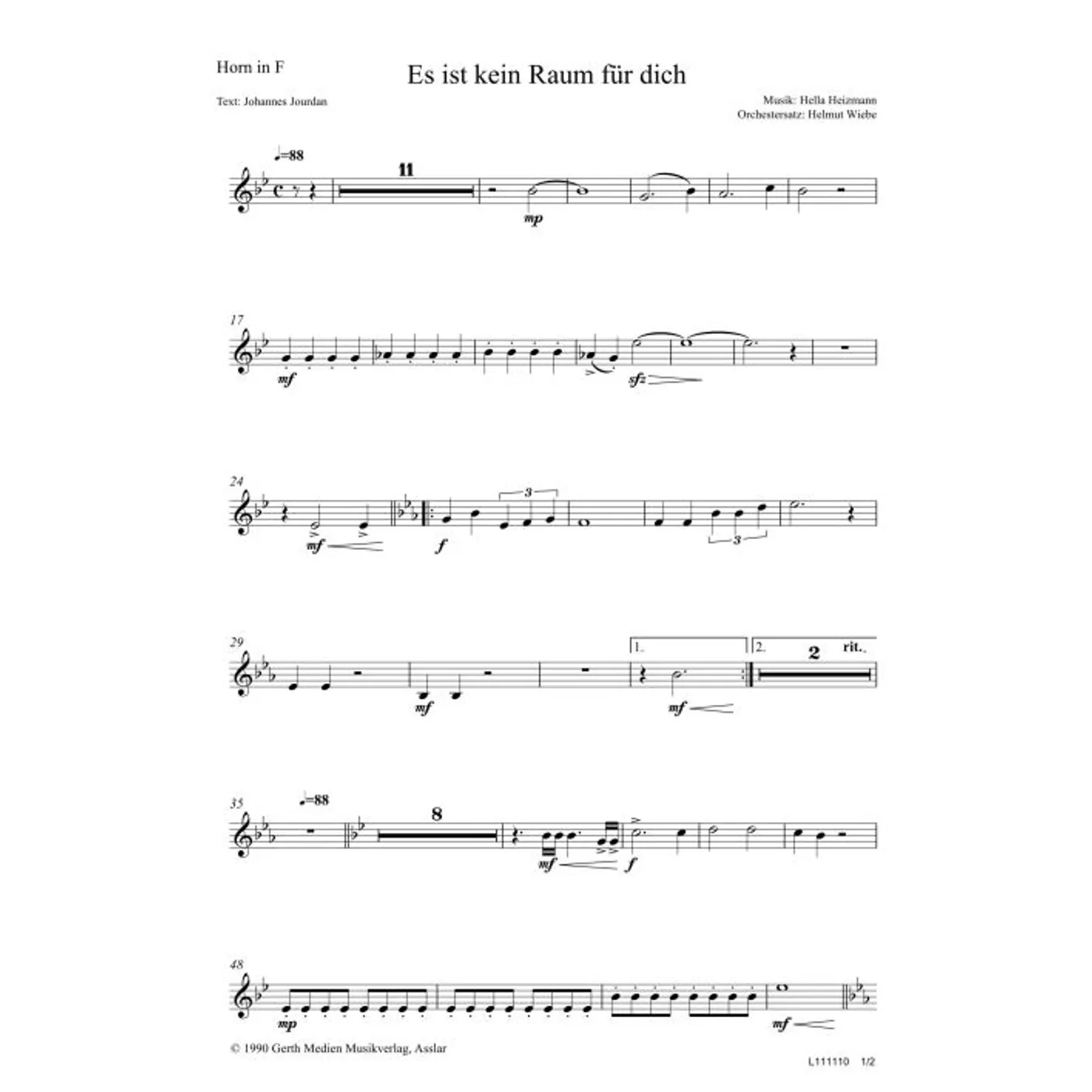 Es ist kein Raum für dich (Horn in F)