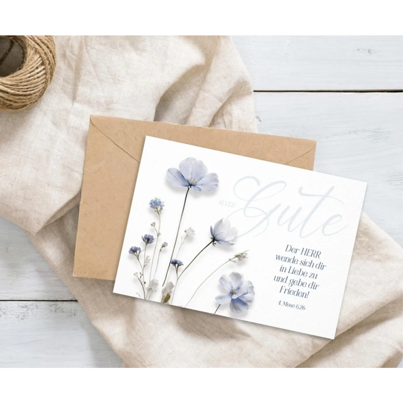 Die Faltkarte „Alles Gute“ aus der liebevoll gestalteten Kollektion „Ins Herz gesät“ verbindet zeitlose Ästhetik mit einer ermutigenden christlichen Botschaft. Sie eignet sich ideal, um einem lieben Menschen Segenswünsche, Wertschätzung und Zuversicht mit auf den Weg zu geben – zu vielen Anlässen des Lebens.