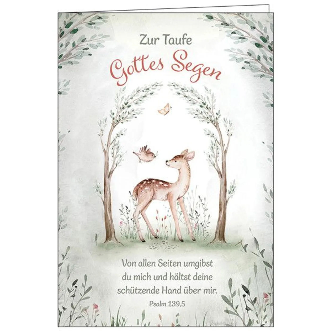 Mit dieser liebevoll gestalteten Karte zur Taufe und dem ausgewählten Bibelvers würdigen Sie den besonderen Anlass. Die gute Botschaft und die liebevolle Gestaltung unterstreichen Ihre Gratulation.