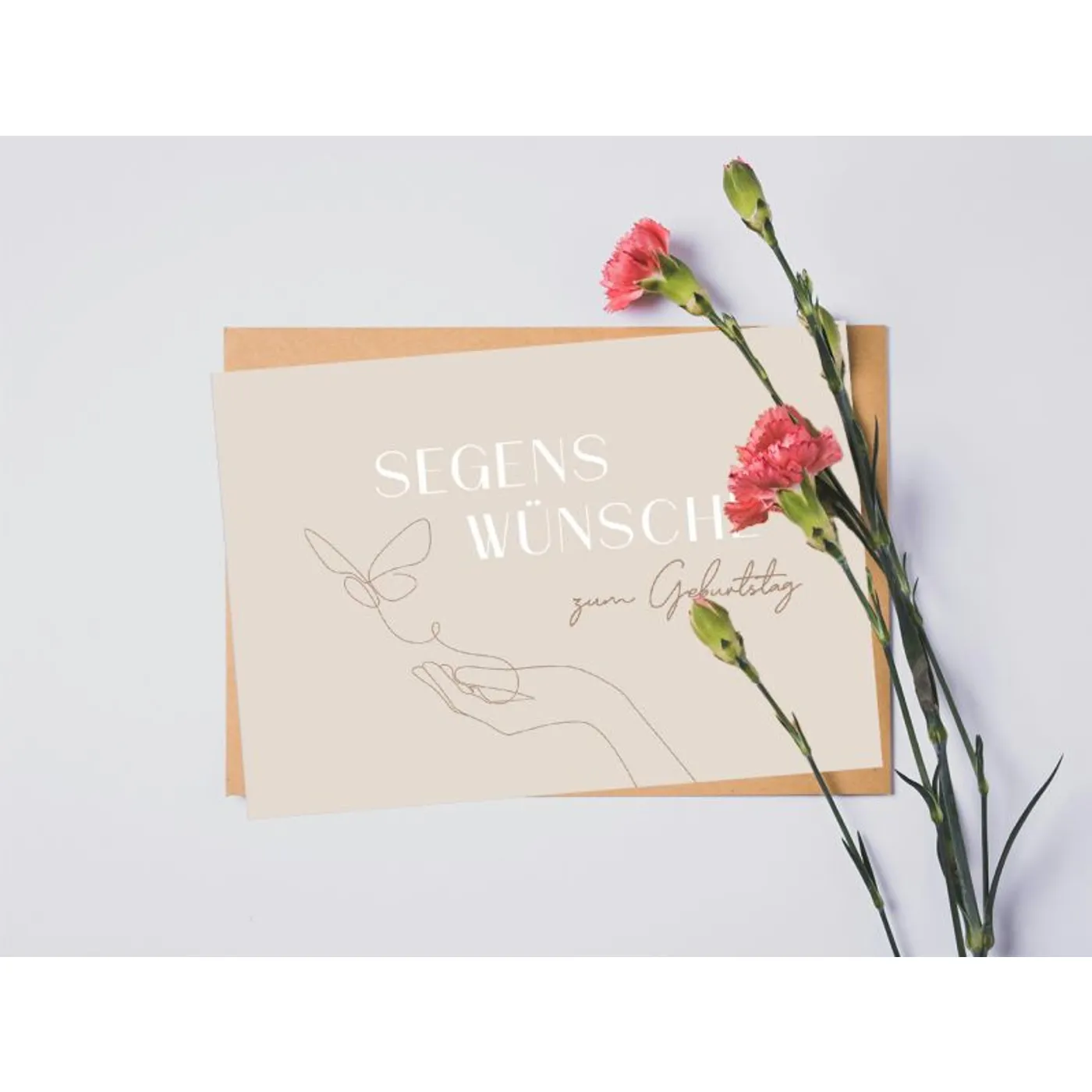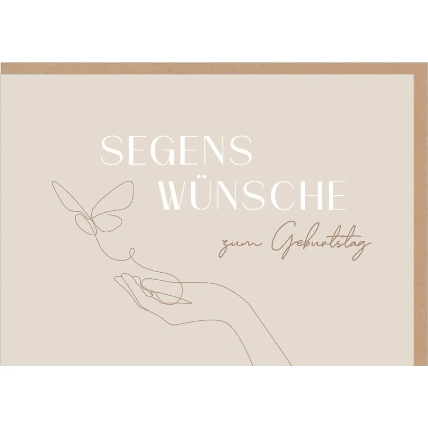 Überrasche mit stilvollen Geburtstagsgrüßen und einer besonderen Botschaft. Diese hochwertige Karte aus der modernen Fatzer alive Serie trägt auf der Vorderseite den Text „Segenswünsche zum Geburtstag“ und ist mit einer schlichten, eleganten One-Line-Zeichnung verziert. Das Motiv zeigt eine Hand, aus der ein Schmetterling emporfliegt – ein Symbol für Freiheit und Leichtigkeit.