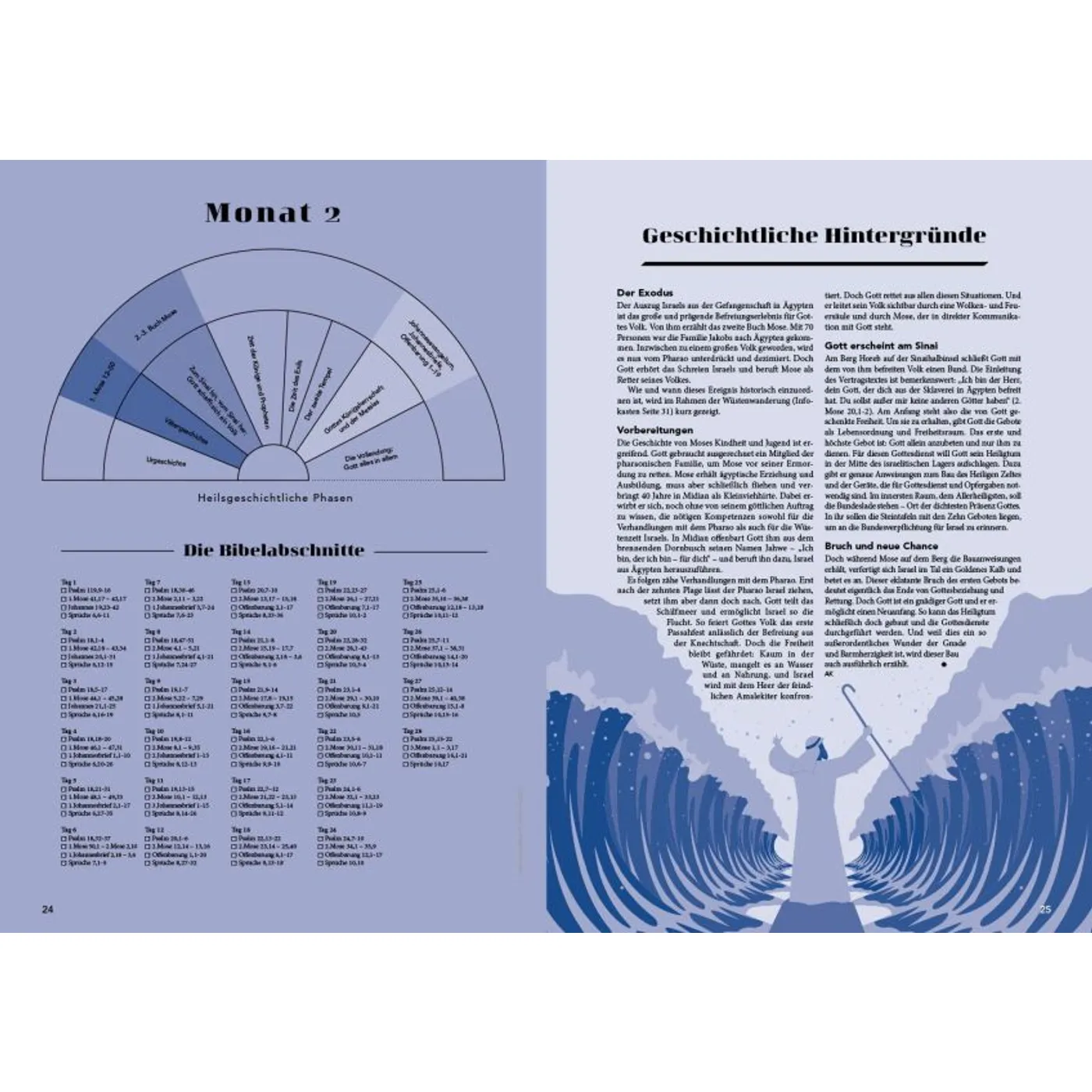 Die Ein-Jahres-Reise durch die Bibel ist das Thema des diesjährigen Specials von Faszination Bibel. Das Heft enthält einen durchdachten Leseplan. Für jeden Tag gibt es vier verschiedene Text-Sorten aus Altem und Neuem Testament. Die Reihenfolge im Alten Testament richtet sich ungefähr nach der Chronologie der erzählten Ereignisse. So werden z. B. die Propheten in den Ablauf der Geschichtsbücher eingebettet. Im Neuen Testament sind die Texte nach theologisch zusammengehörigen Gruppen geordnet. So werden faszinierende Zusammenhänge sichtbar. Darüber hinaus gibt es für jeden Lesemonat Hintergrundinformationen zu den betreffenden Bibeltexten. Erfahrungsberichte von Menschen, die so eine Lese-Reise schon einmal gemacht haben, runden das Special ab.