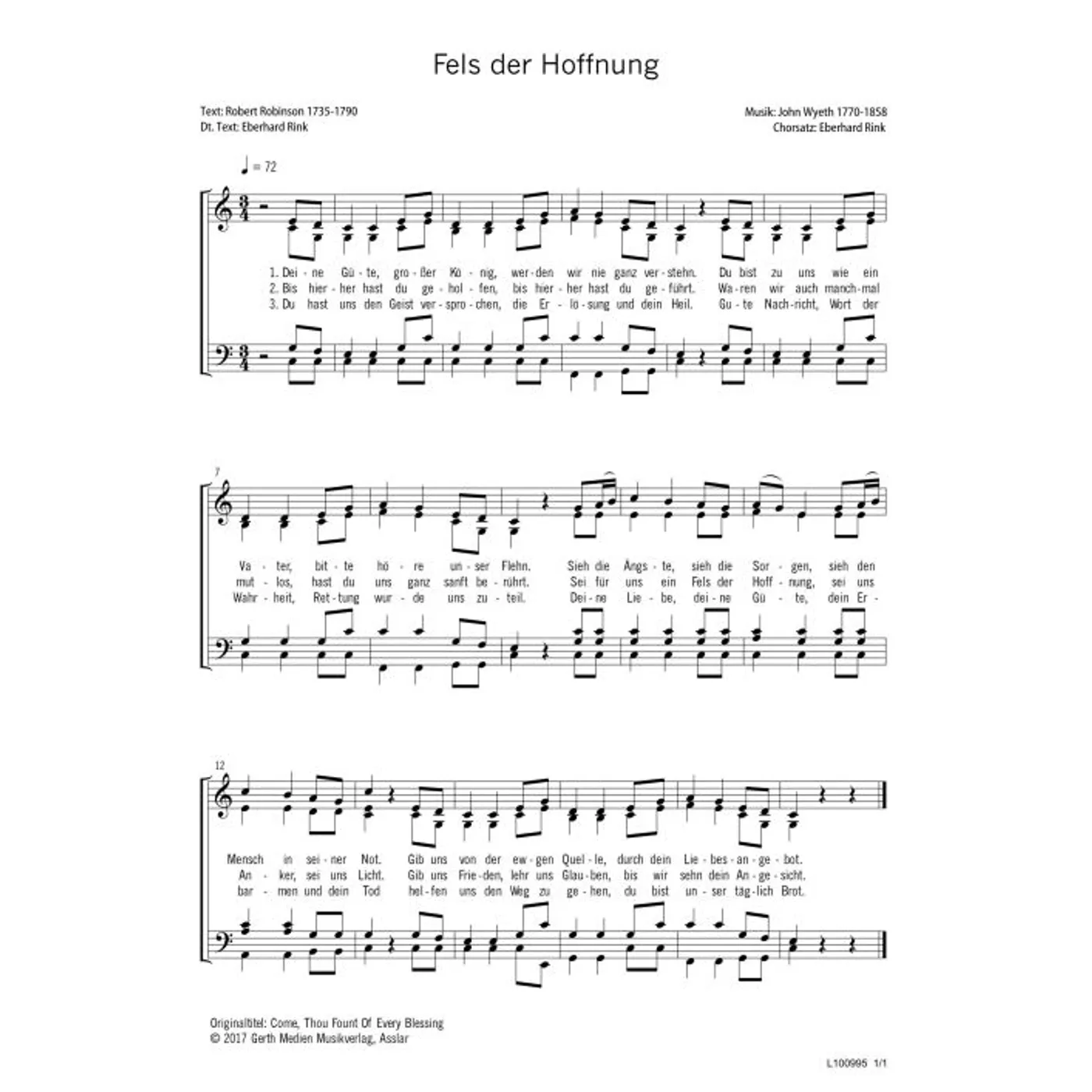 (Gemeindelied, modern, gemischter Chor, vierstimmig) John Wyeth (Komposition, Text), Eberhard Rink (Chorsatz, Übersetzung)