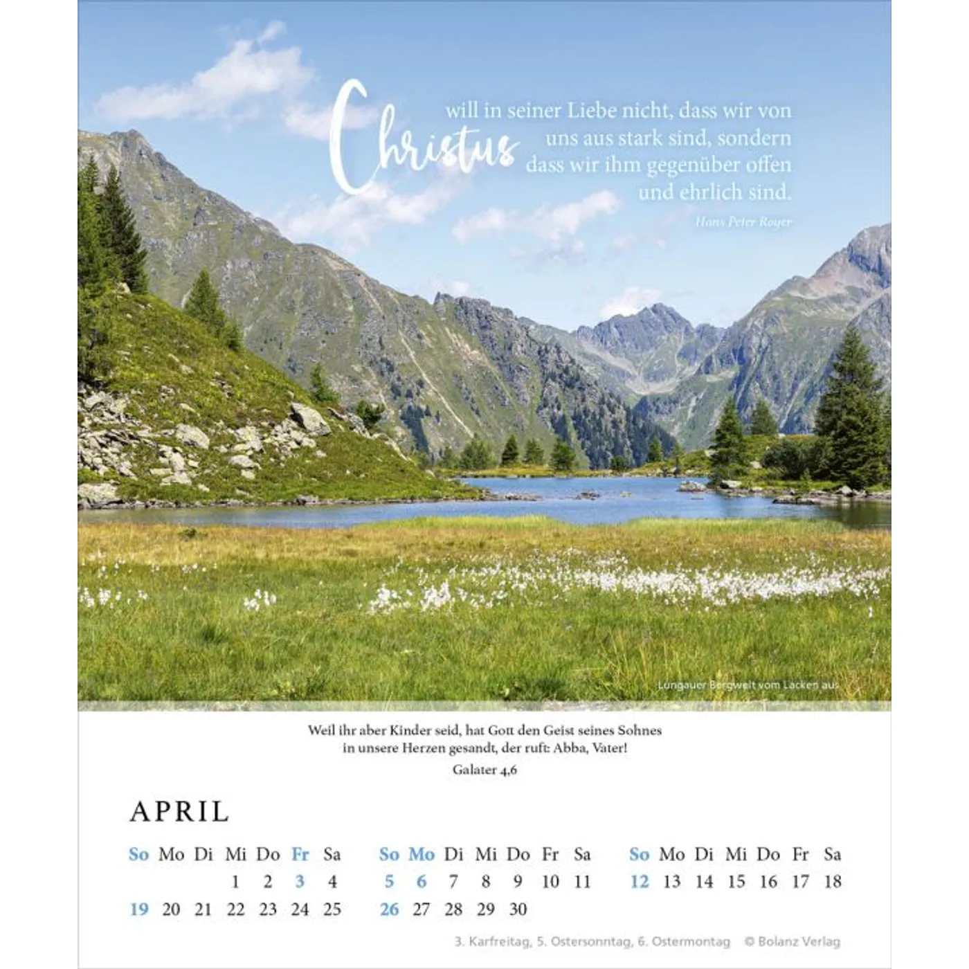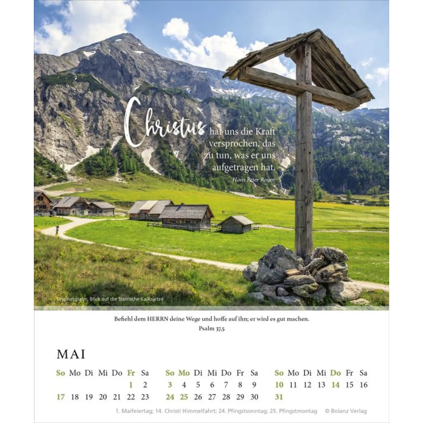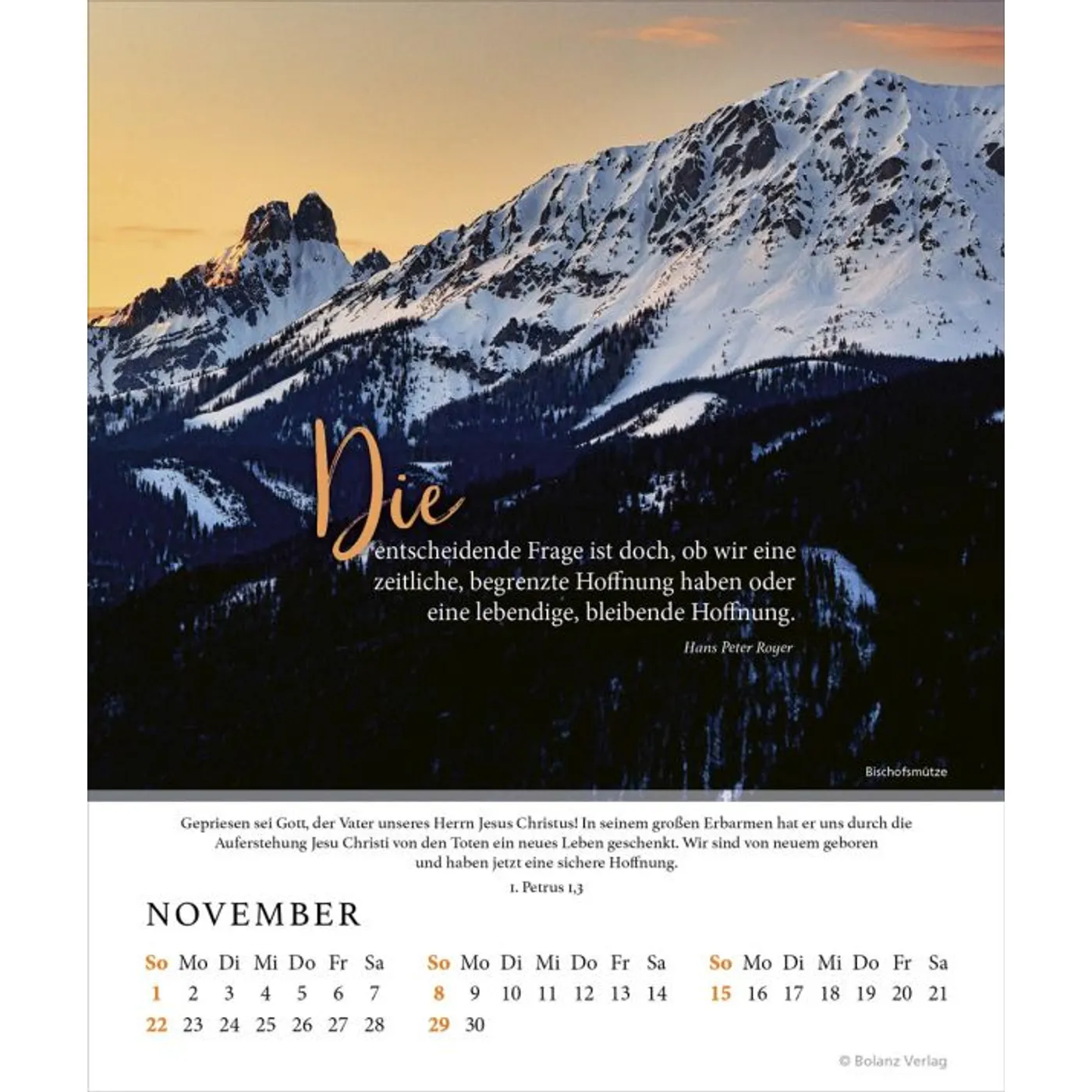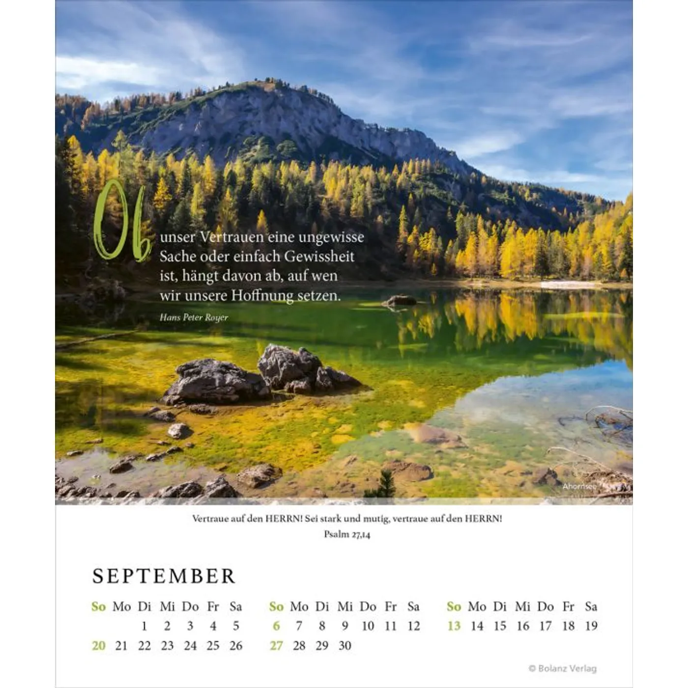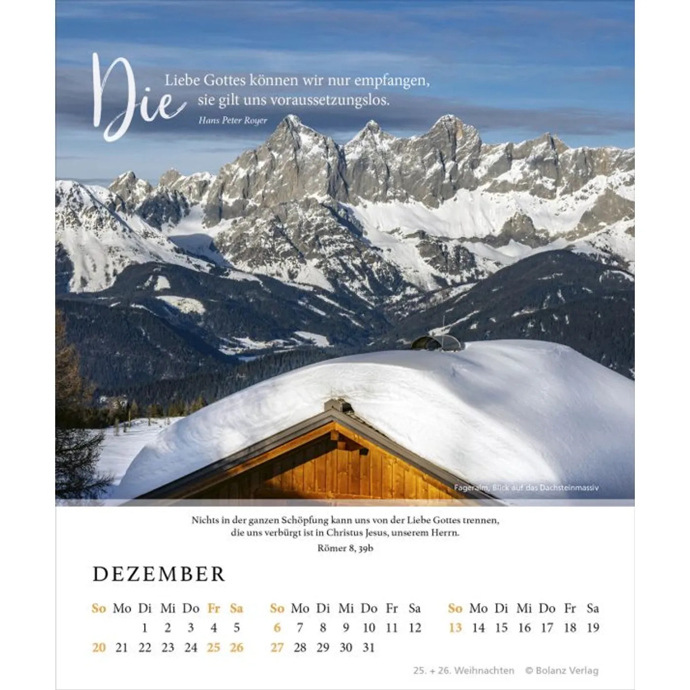 Postkartenkalender zum Aufstellen und mit 12 Postkarten zum Ausschneiden. / Erlebe die beeindruckende Bergwelt von Hans Peter Royer (1962-2013) und lasse Dich von den lebendigen und authentischen Landschaftsaufnahmen seines Freundes und Bergkameraden Lothar Scherer (-2023) inspirieren. Der Posterkalender "Fels meiner Stärke" entführt Dich in die Heimatberge rund um das Dachsteingebirge und bietet eine eindrucksvolle Sammlung von Bildern, die die Schönheit der Natur eindrucksvoll festhalten. Zusätzlich macht dieser Kalender die inspirierenden Zitate aus Royers Predigten und Büchern zu etwas ganz Besonderem. Sie bringen seine tiefen Überzeugungen und seine Leidenschaft für den Glauben zum Ausdruck und begleiten Dich durch das Jahr. Dank der praktischen Spiralbindung und dem stabilen Aufsteller kannst Du diesen atemberaubenden Kalender überall hinstellen und immer wieder in die beeindruckende Bergwelt eintauchen.