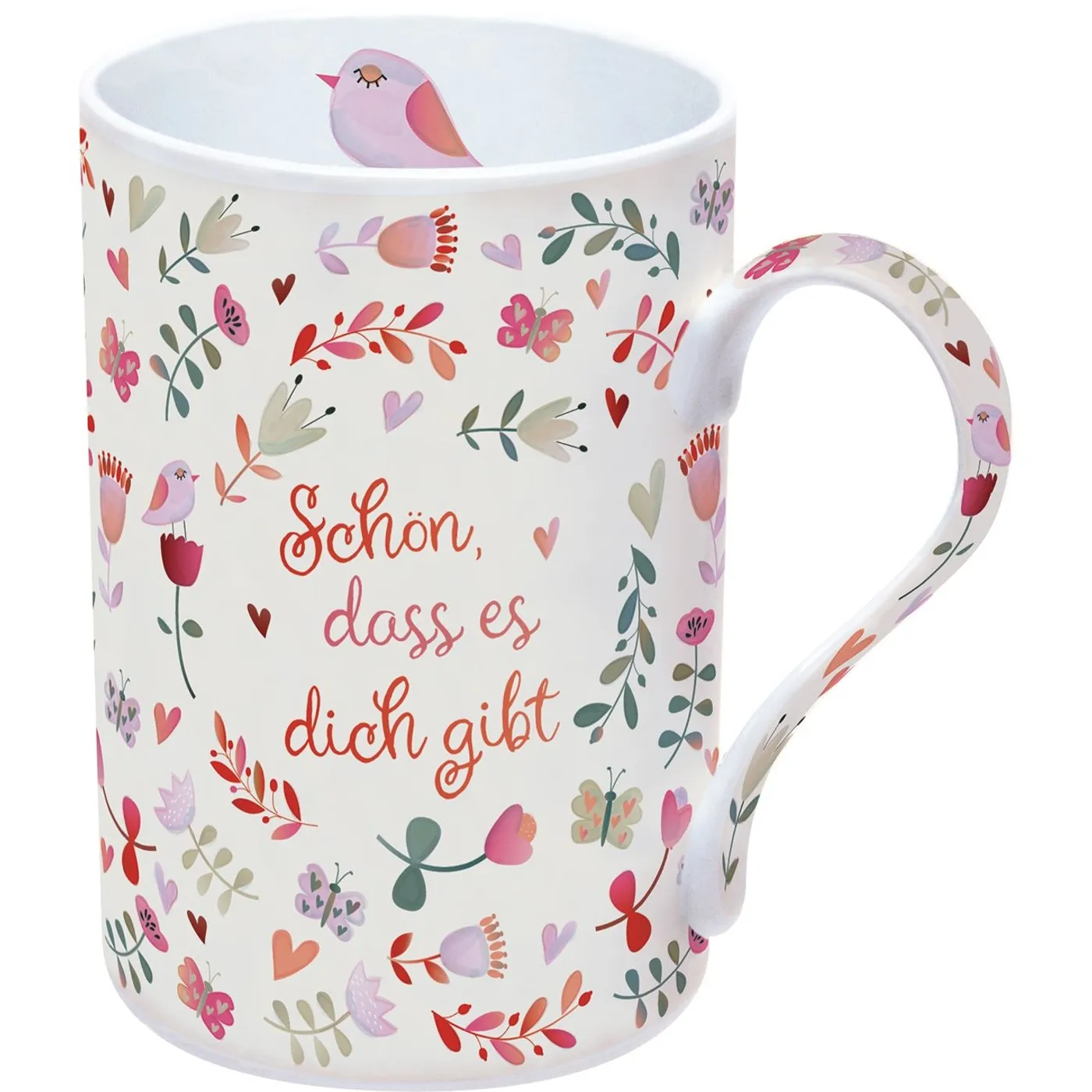 Tasse mit liebevoller Zusage und verspieltem Blumenmotiv