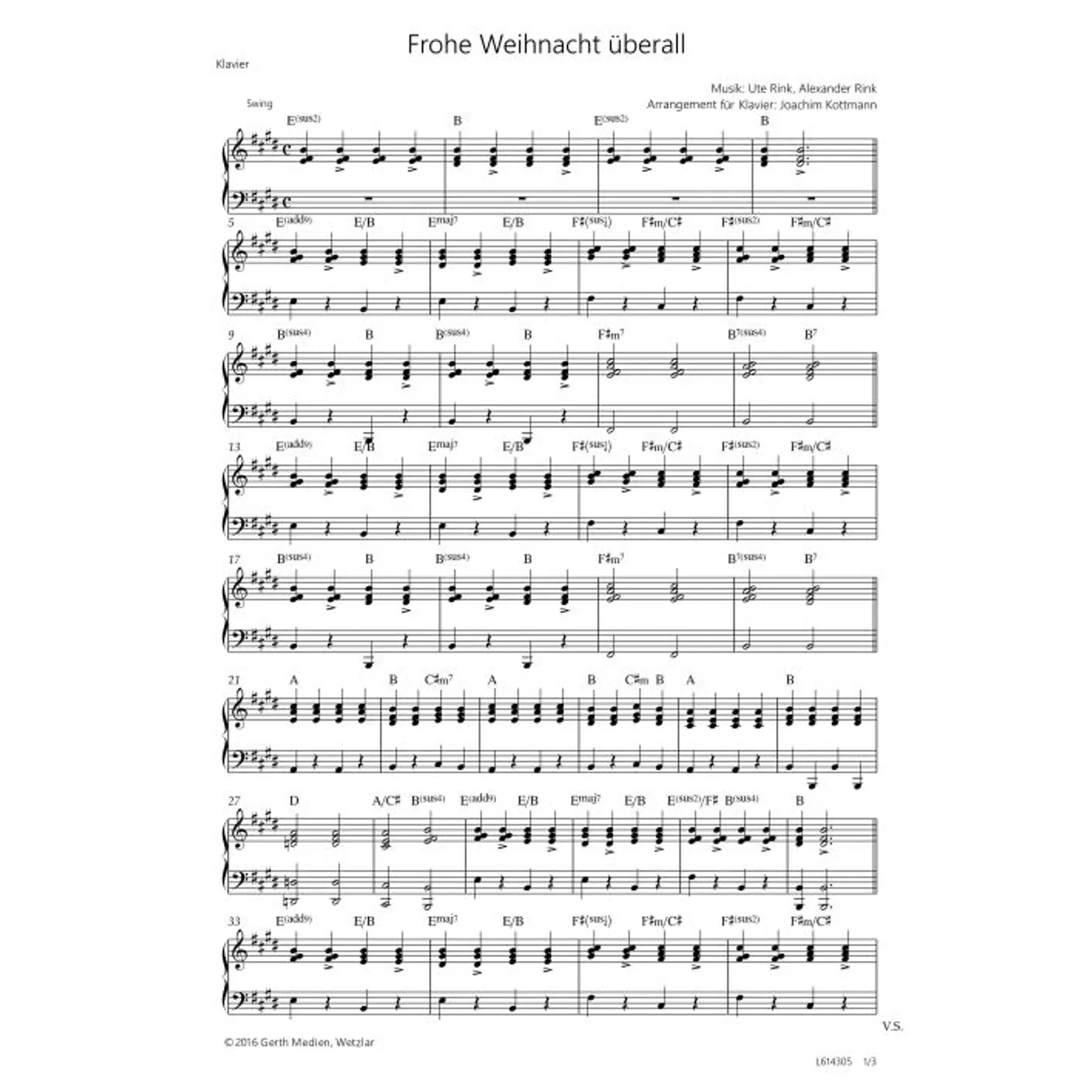 Frohe Weihnacht überall (diese Variante haben Sie gerade ausgewählt) (modern, Klavier, Klavierpartitur, Partituren, E-Dur) Alexander Rink (Komposition), Ute Rink (Komposition), Joachim Kottmann (Klaviersatz) |