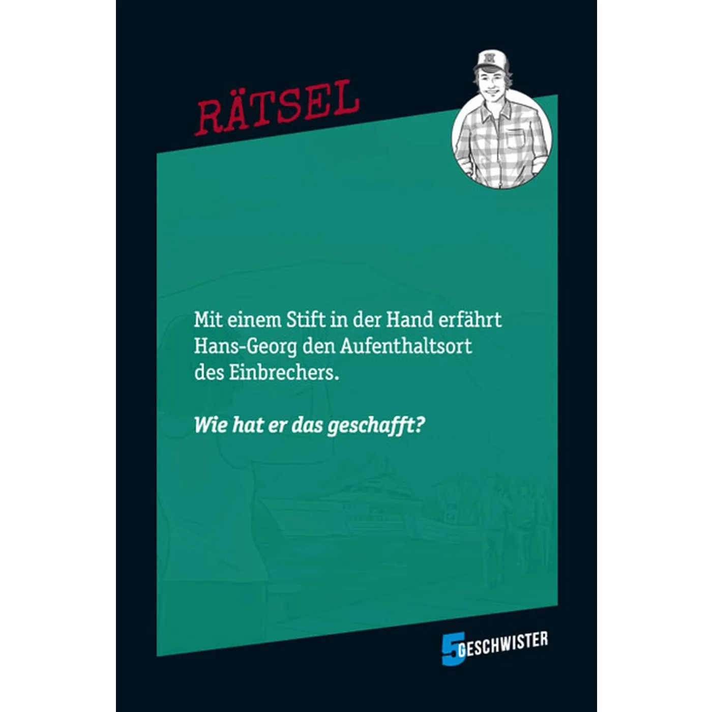 Der ultimative Spiele-Spaß mit den "5 Geschwistern": 60 verzwickte Rätsel aus aller Herren Länder mit unglaublichen Vorkommnissen an geheimen Orten. Das ultimative "5 Geschwister"-Kartenspiel schickt Rätselfreunde ab acht Jahren auf Verbrecherjagd - und lässt sie spannende Fälle lösen. Dabei gilt es, mit "Ja" oder "Nein"-Fragen die wahren Vorkommnisse hinter den Fakten zu erraten. Spielespaß kommt schon ab zwei Spielern auf - noch interessanter wird es in einer größeren Gruppe.