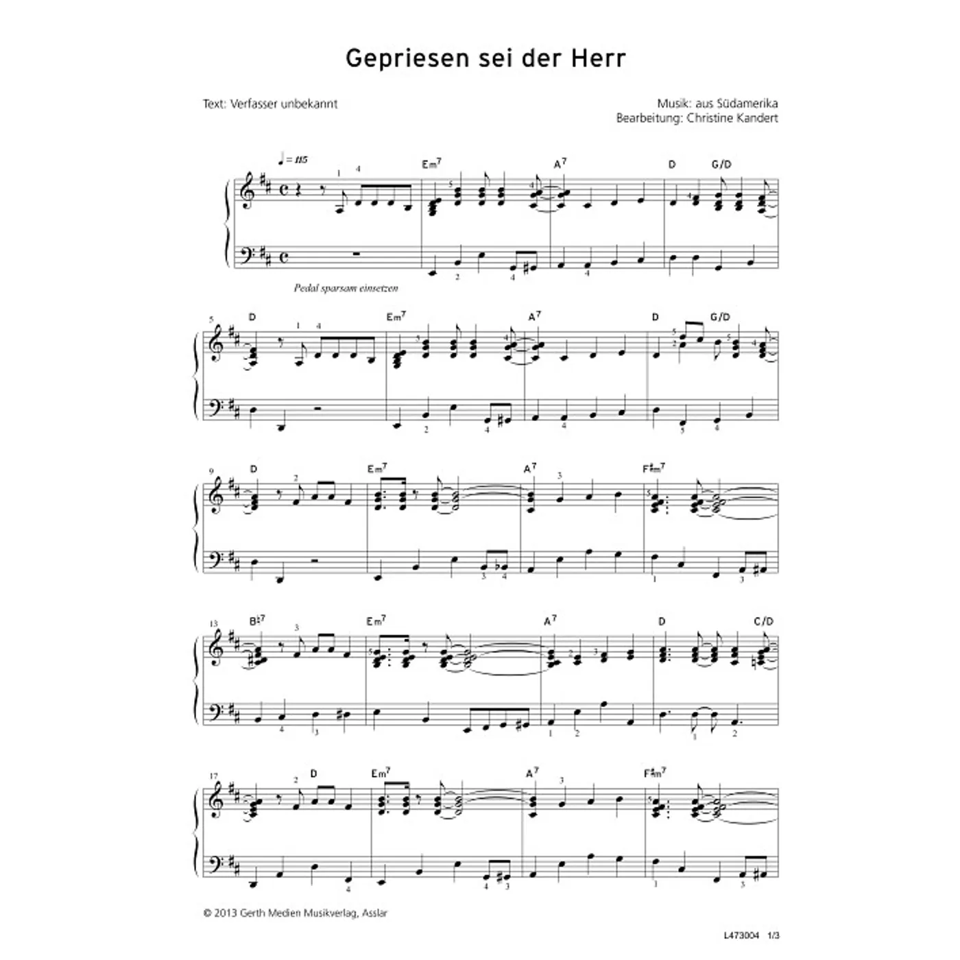 Gepriesen sei der Herr (diese Variante haben Sie gerade ausgewählt) (Gemeindelied, Klavier, Klavierpartitur, Partituren, mit Akkorden, D-Dur) Christine Kandert (Klaviersatz) |