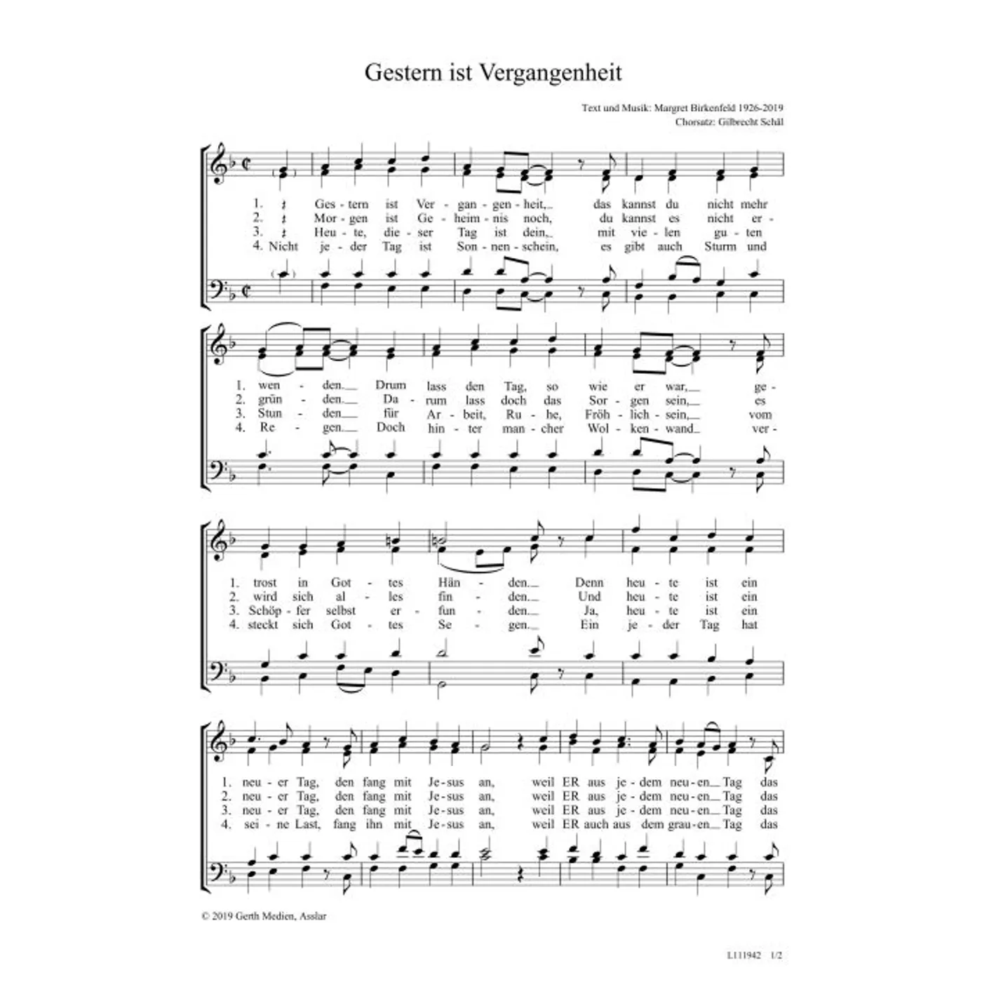 Gestern ist Vergangenheit (diese Variante haben Sie gerade ausgewählt) (traditionell, gemischter Chor, vierstimmig) Margret Birkenfeld (Komposition, Text), Gilbrecht Schäl (Chorsatz) |
