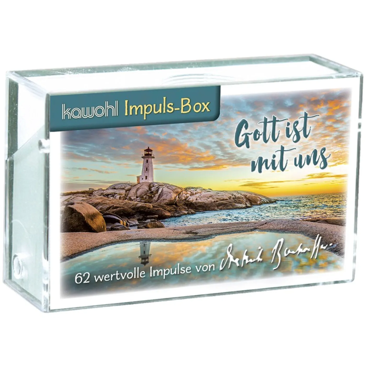 Eine liebevoll gestaltete Kartenbox mit 62 prägnanten Zitaten von Dietrich Bonhoeffer und passenden, markanten Bildern. Ziehen Sie aus 62 Karten Ihren persönlichen Impuls für den Tag. Sie können auch die komplette Box verschenken oder einzelne Karten daraus weitergeben, um anderen eine Freude zu machen. Denn wer die Motive auf sich wirken lässt, wird inspiriert, berührt und geistlich ermutigt.