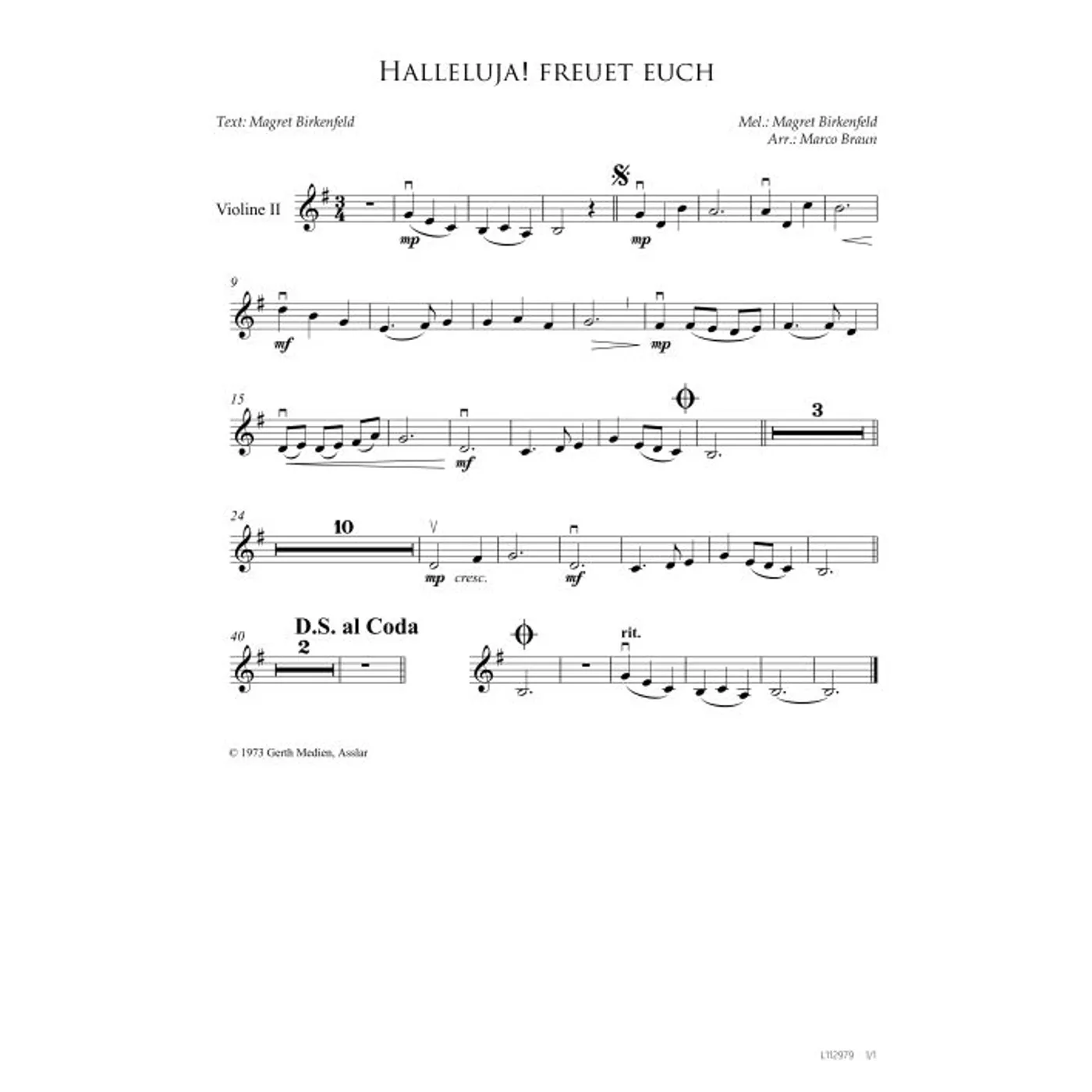 Halleluja! Freuet euch (Violine 2) (diese Variante haben Sie gerade ausgewählt) (traditionell, Orchestereinzelstimme) Margret Birkenfeld (Komposition, Text), Marco Braun (Bearbeiter) |