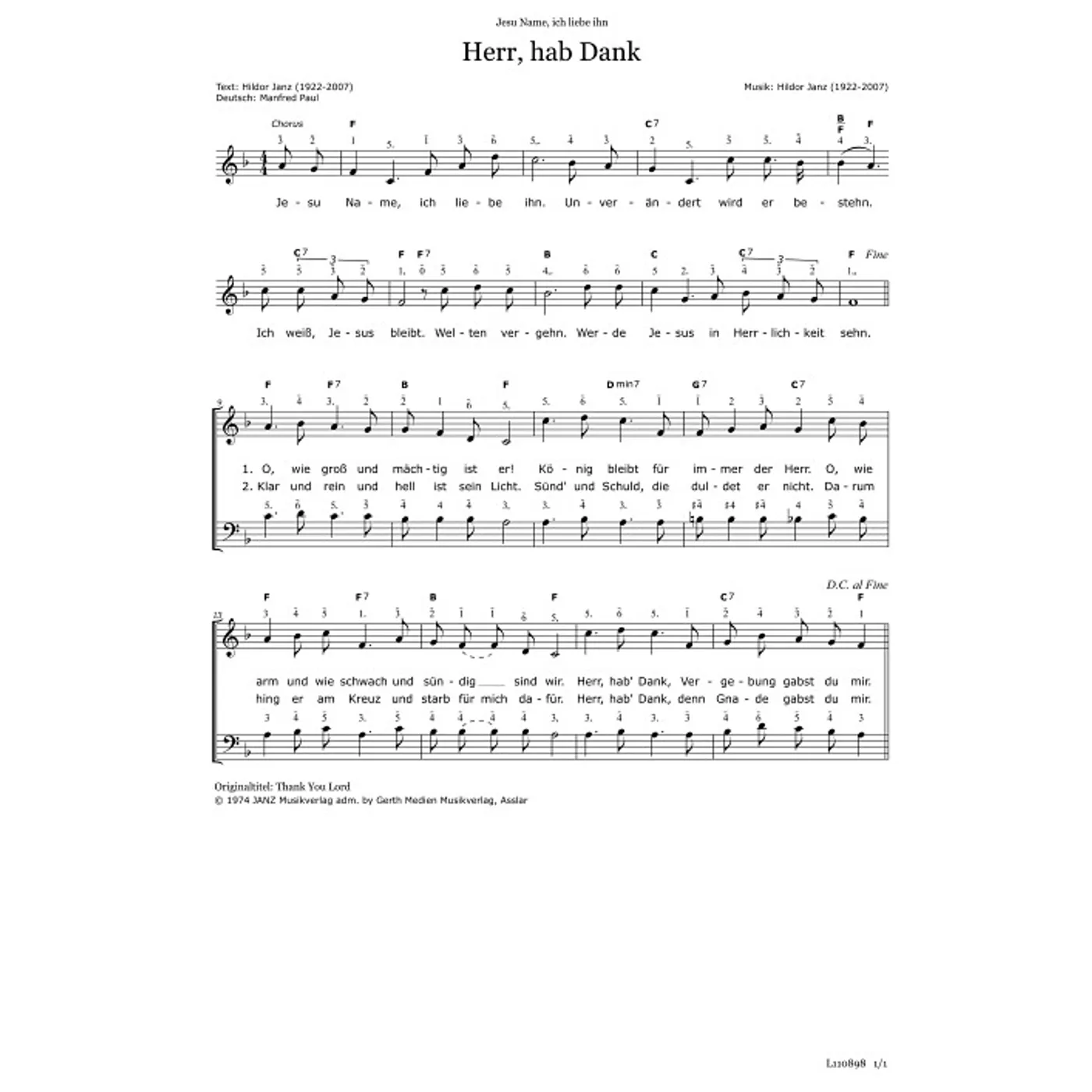 Herr, hab Dank (diese Variante haben Sie gerade ausgewählt) (traditionell, gemischter Chor, mit Akkorden, zweistimmig, F-Dur) Hildor Janz (Komposition, Text), Manfred Paul (Übersetzung) |