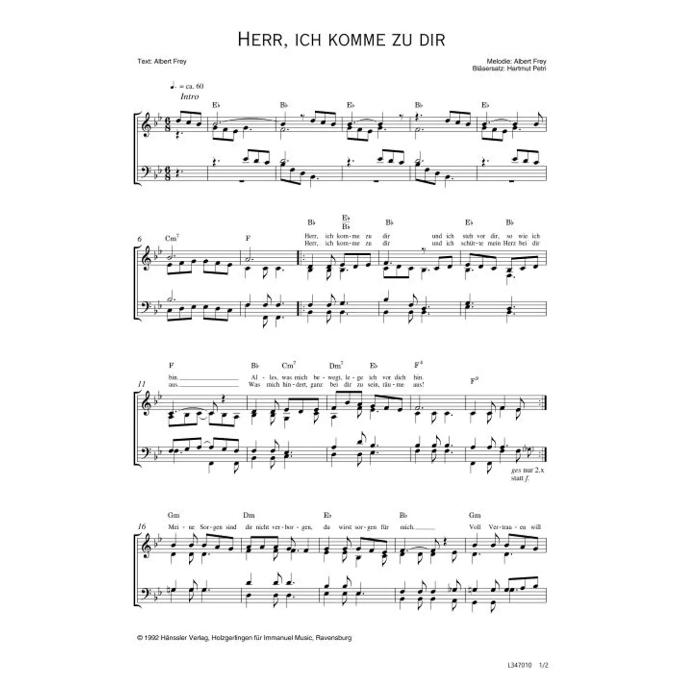 Herr, ich komme zu dir (diese Variante haben Sie gerade ausgewählt) (Bläser, mit Akkorden, vierstimmig, B-Dur) Albert Frey (Komposition, Text), Hartmut Petri (Bearbeiter) |